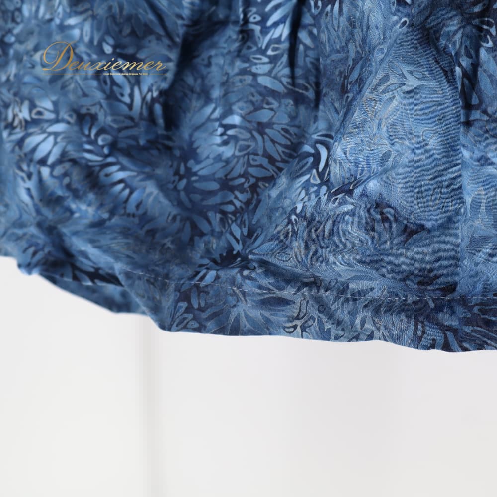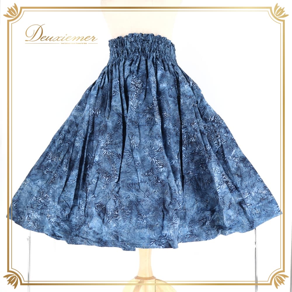 フラダンス 衣装 パウスカート ネイビー系 Hale No eau ハワイアンプリント 植物柄 アロハ フラ ダンス レッスン 練習 紺 ブルー系 青 シングル スカート 華やか 鮮やか おしゃれ かわいい 上品 大人っぽい フレア ふんわり 軽やか