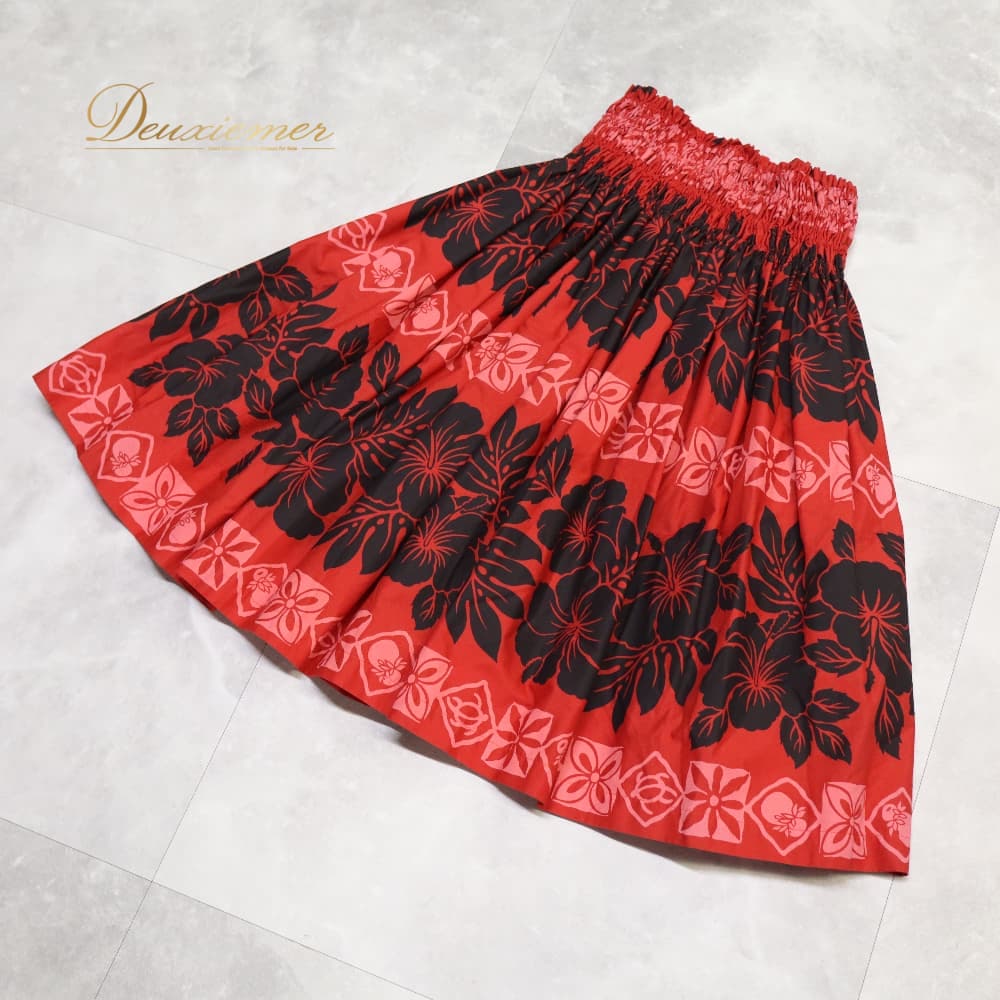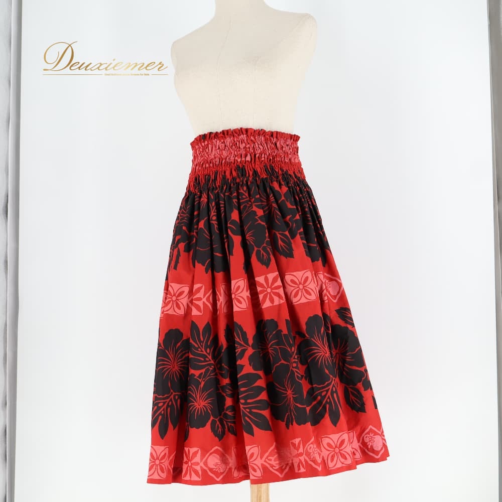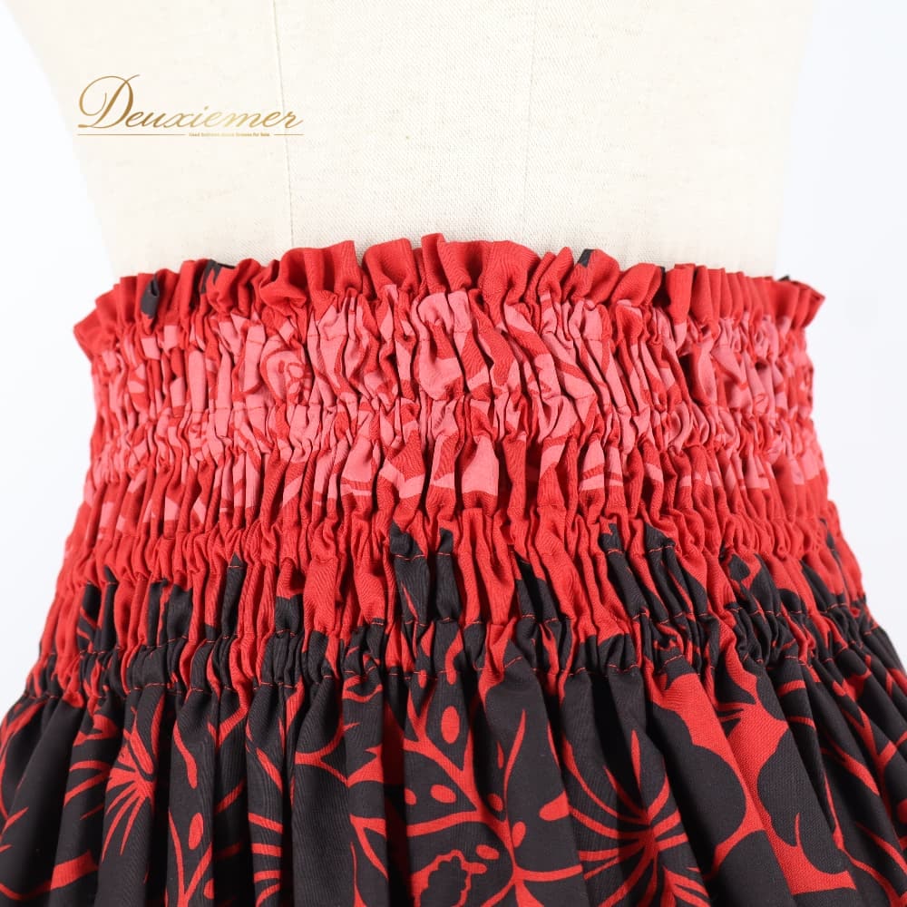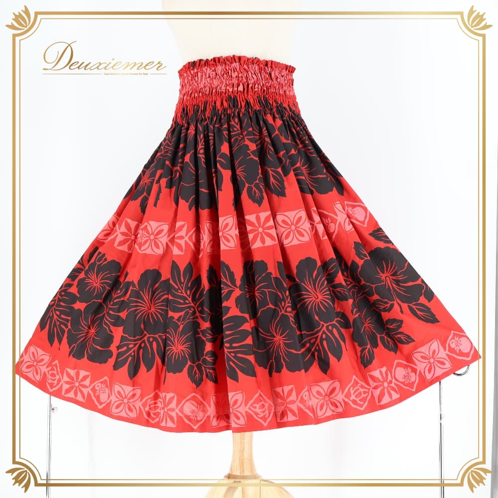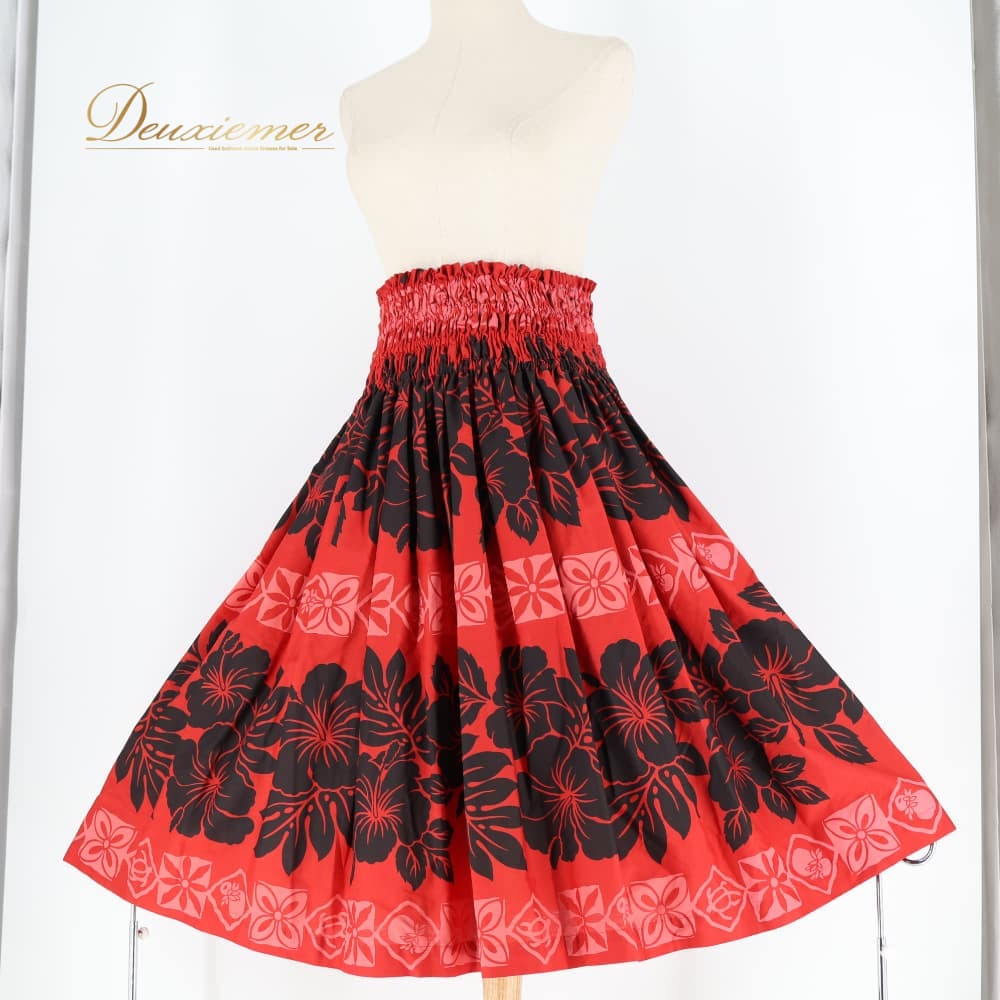 フラダンス 衣装 パウスカート レッド系 日本製 赤 黒 ハイビスカス柄 モンステラ柄 ティアレ柄 ハワイアンプリント 花柄 植物柄 アロハ フラ ダンス レッスン 練習 ブラック系 ピンク系 シングル フレアスカート 華やか 鮮やか かわいい おしゃれ 上品