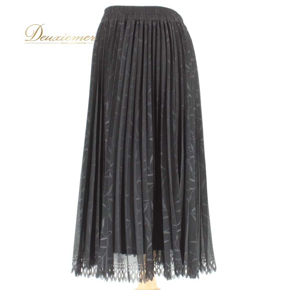 社交ダンス 衣装 スカート レッスンウェア ブラック系 練習着 黒 プリーツ ボタニカル 植物 草 フォーマル 上品 大人っぽい スタンダード きれいめ 華やか エレガント レディース オールシーズン ボールルームダンス ソシアルダンス シック