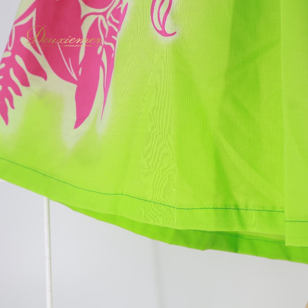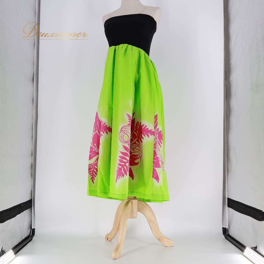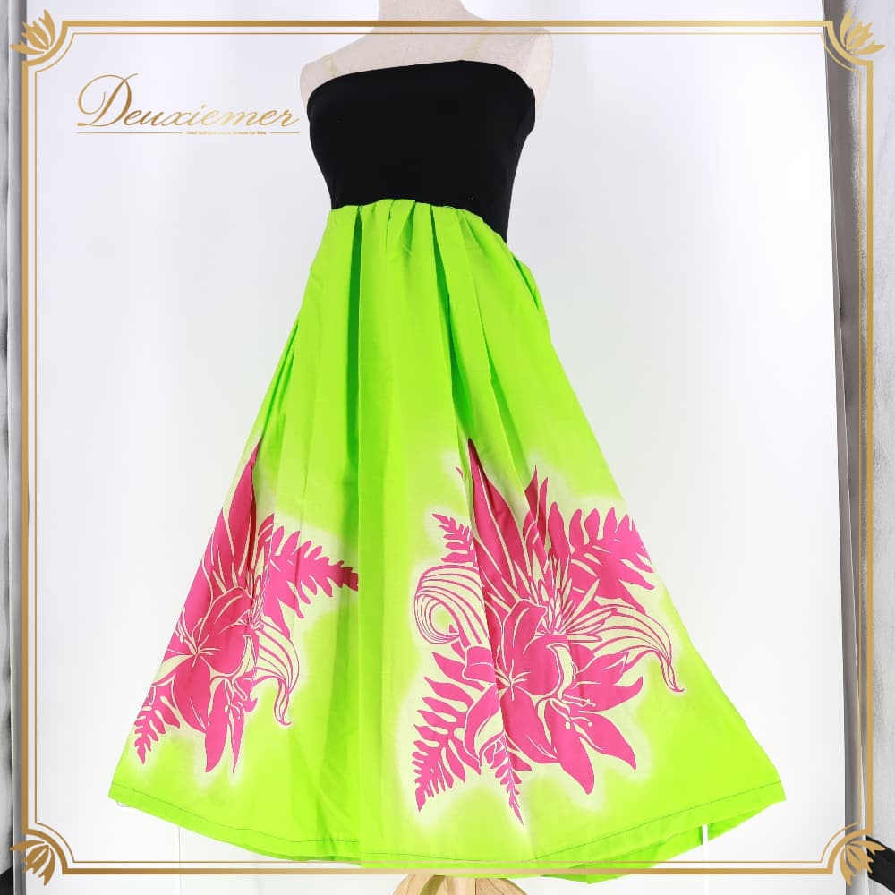 フラダンス 衣装 ワンピース ドレス グリーン系 ハイビスカス柄 花柄 植物柄 ハワイアンプリント アロハ フラ ダンス レッスン 練習 ブラック系 ホワイト系 ピンク系 黄緑 ピンク 黒 華やか 鮮やか かわいい おしゃれ 上品 フレア ハワイアンダンス 練習着 レッスンウェア