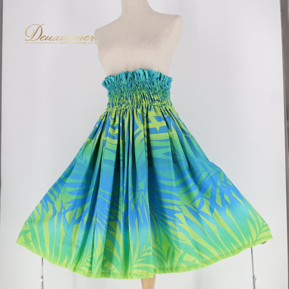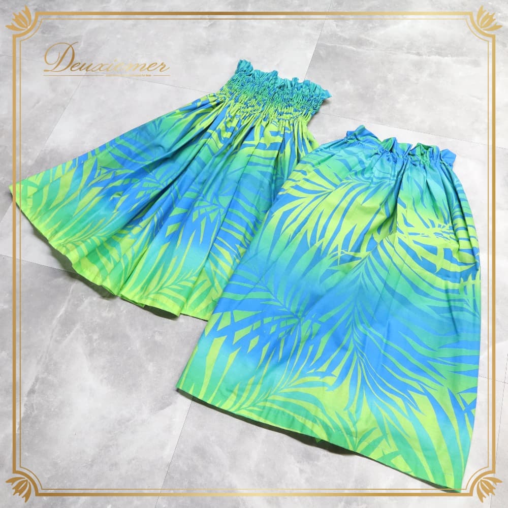 フラダンス 衣装 パウスカート ブルー系 Nohea ハワイ製 グリーン系 グラデーション 植物柄 ハワイアンプリント アロハ フラ ダンス レッスン 練習 シングル スカート ペチコート 2枚セット さわやか 華やか 鮮やか おしゃれ 上品 軽やか ハワイアンダンス
