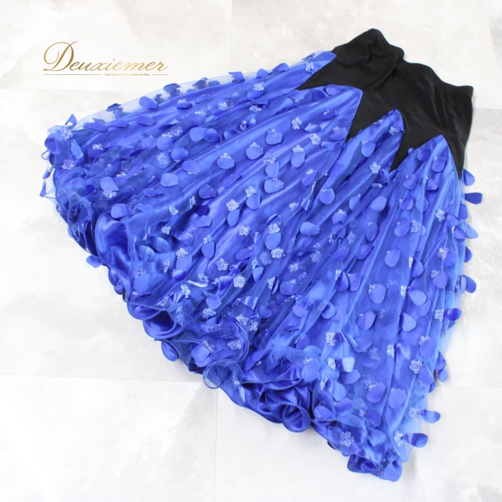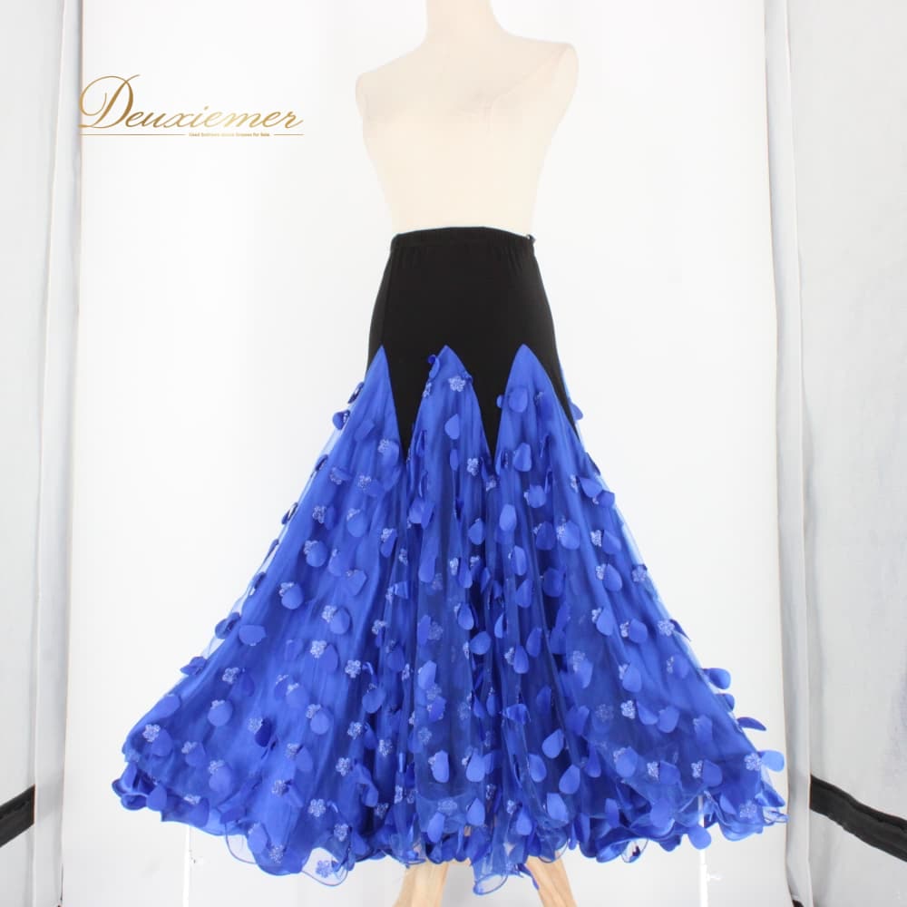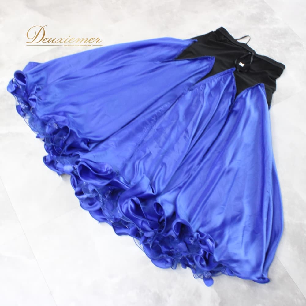 社交ダンス 衣装 スカート レッスンウェア ブラック系 ブルー系 青 黒 スタンダード 練習着 レース 3Dレース 上品 大人っぽい きれいめ 華やか エレガント バイカラー ステージ衣装 発表会 レディース オールシーズン ソシアルダンス ボールルームダンス