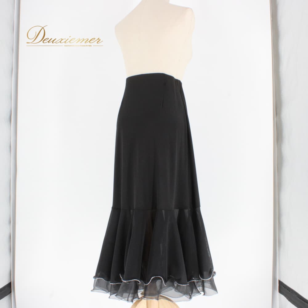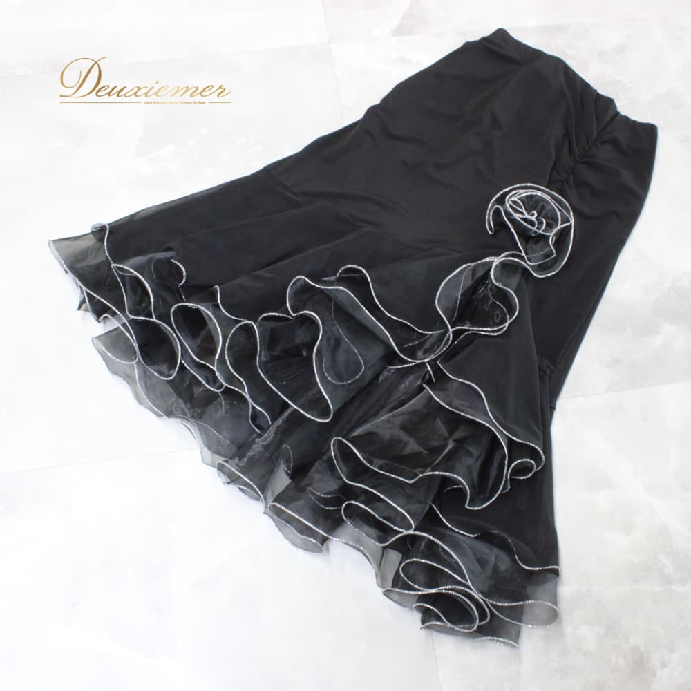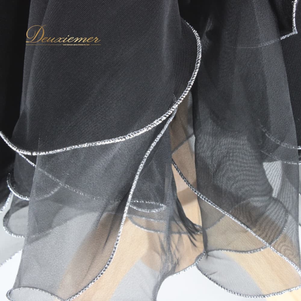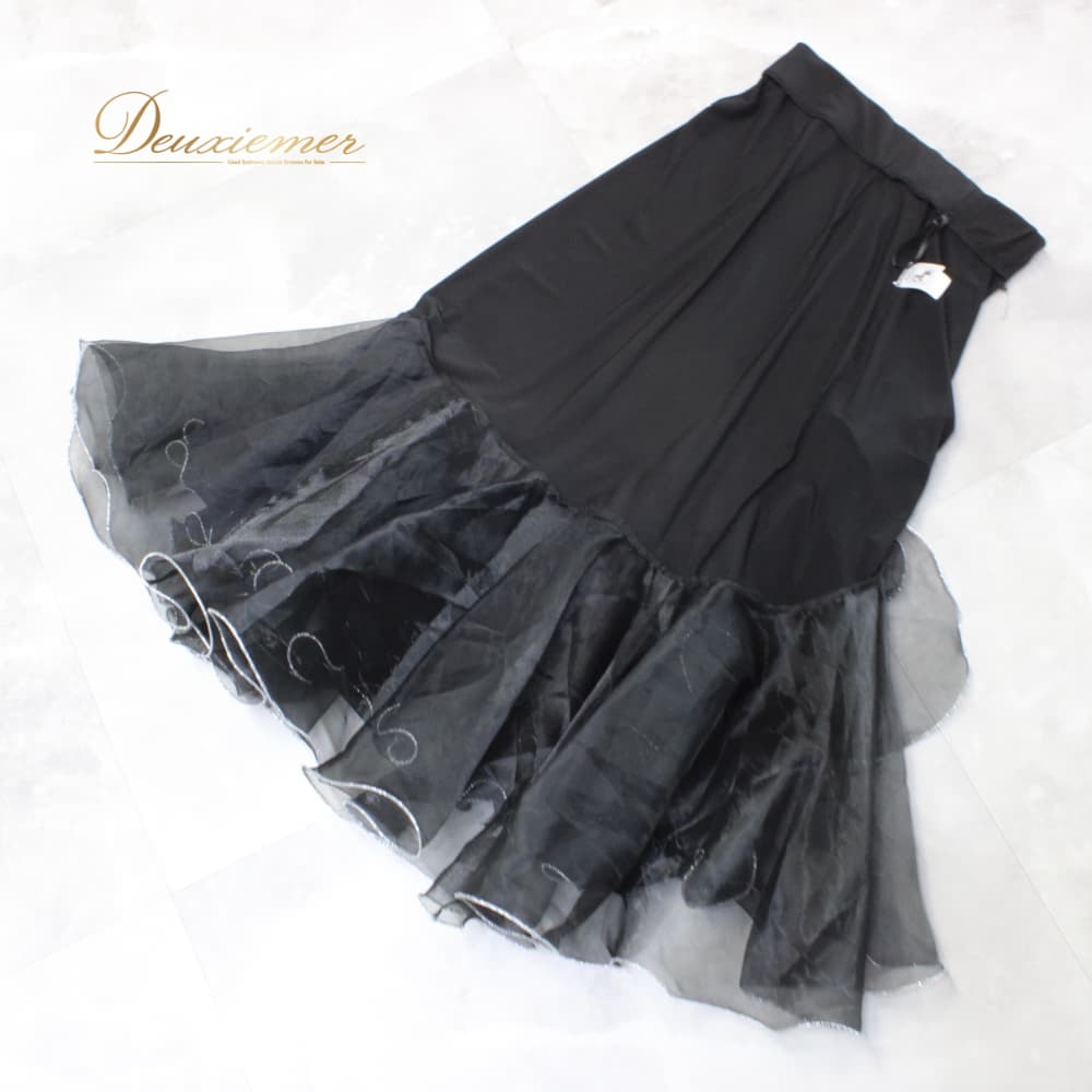 社交ダンス 衣装 ACROSS アクロス スカート レッスンウェア ブラック系 シルバー系 練習着 フォーマル 黒 銀 透け感 ボリューム レディース オールシーズン ソシアルダンス ボールルームダンス 上品 大人っぽい きれいめ 華やか エレガント ステージ衣装 発表会
