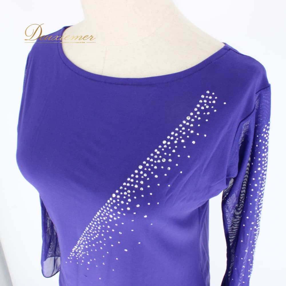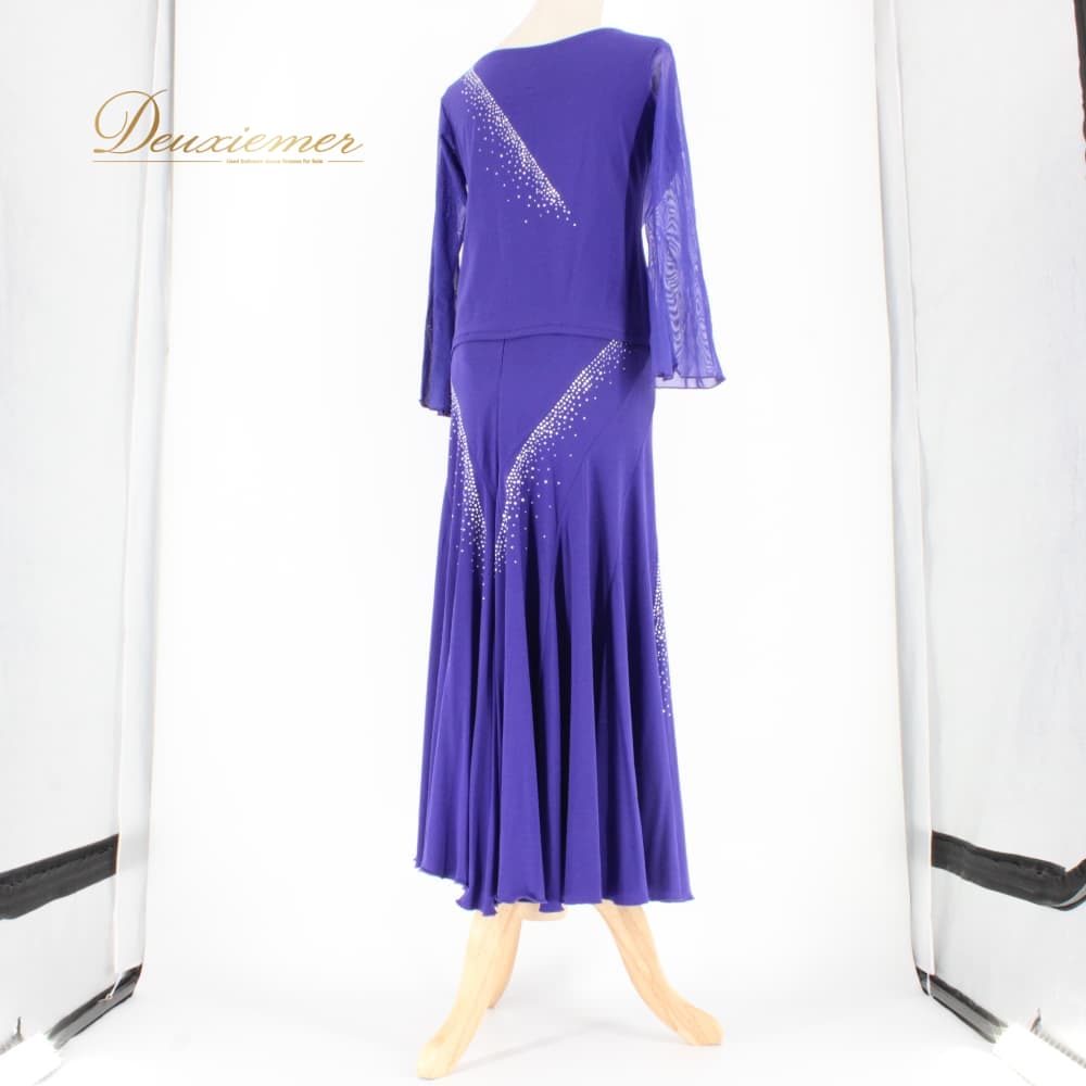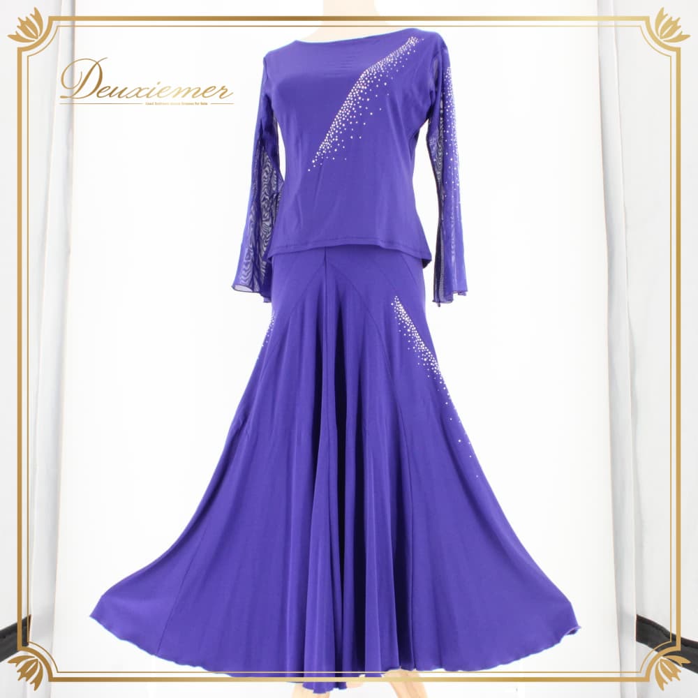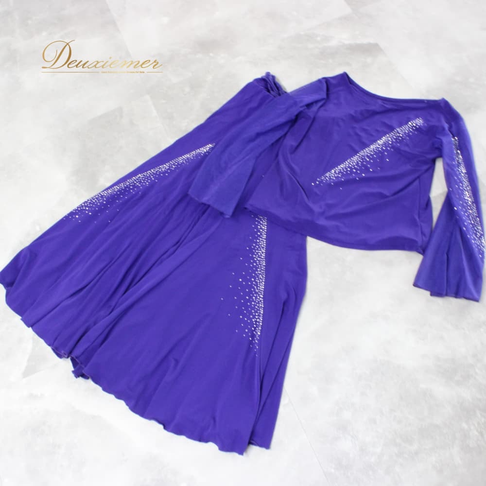 社交ダンス 衣装 create-sun クリエイトサン ツーピース レッスンウェア パープル系 スタンダード セットアップ 上下セット トップス スカート 紫 長袖 ラインストーン レース フォーマル 上品 大人っぽい きれいめ 華やか エレガント ダンスパーティー レディース オールシーズン