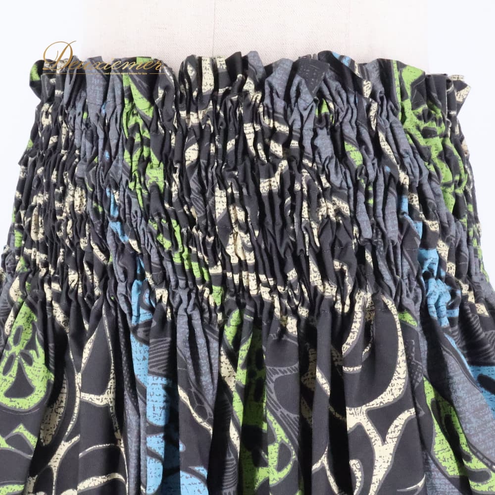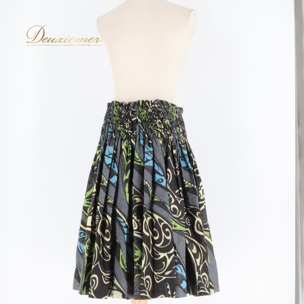 フラダンス 衣装 ハレハワイイ パウスカート グレイ系 日本製 カヒコ柄 シングル シンプル きれい 上品 華やか 鮮やか 大人っぽい 黒 緑 青 黄 ハワイアン アロハ ハワイアンプリント フラ ダンス レッスン 練習 ブラック系 ブルー系 グリーン系 黒系