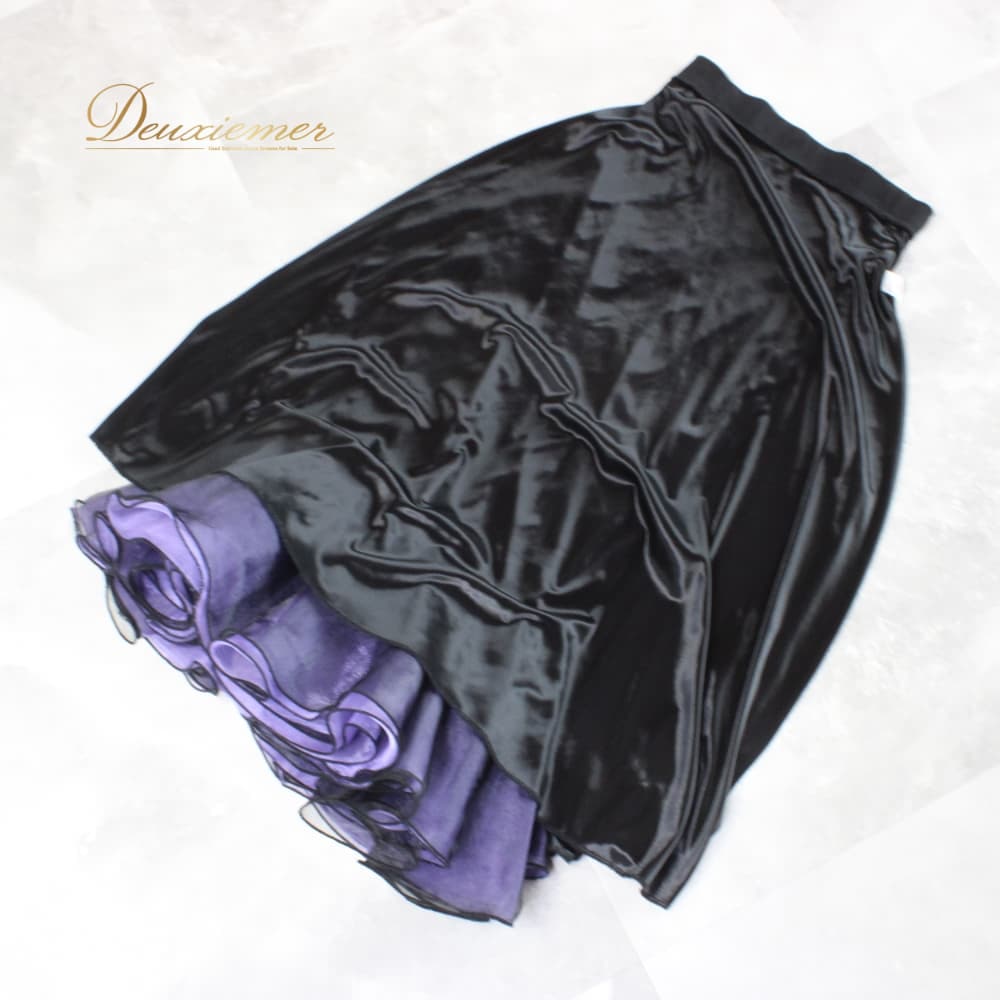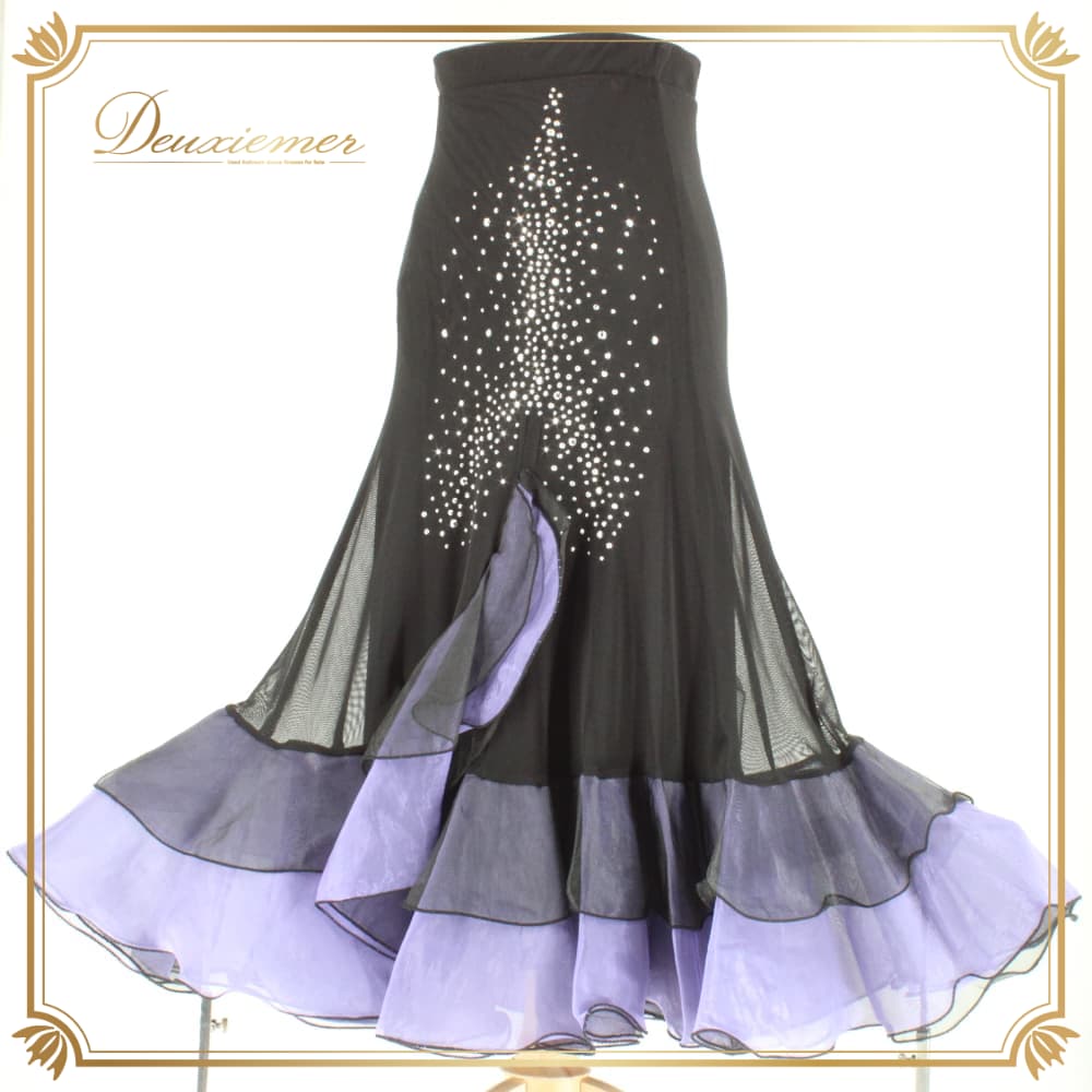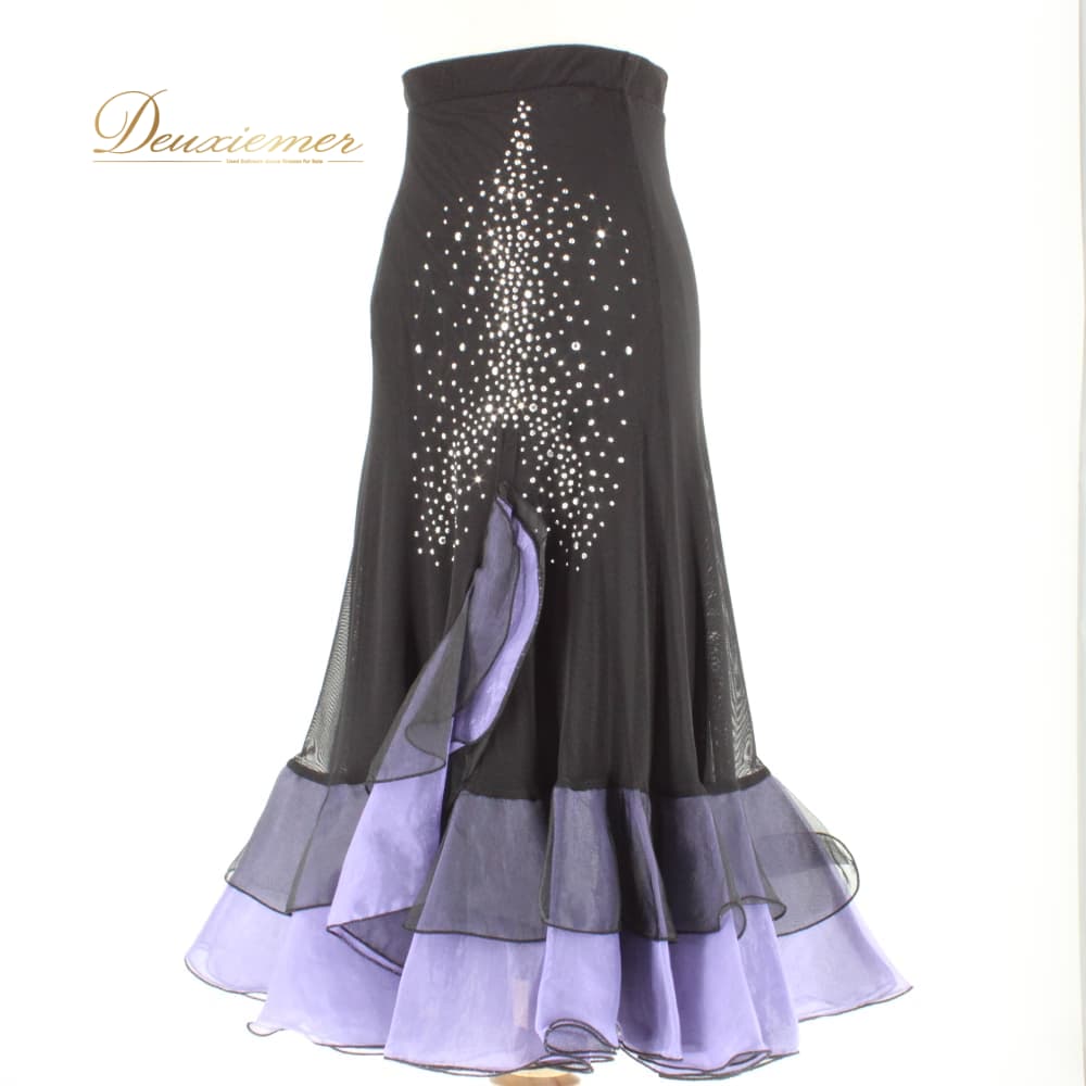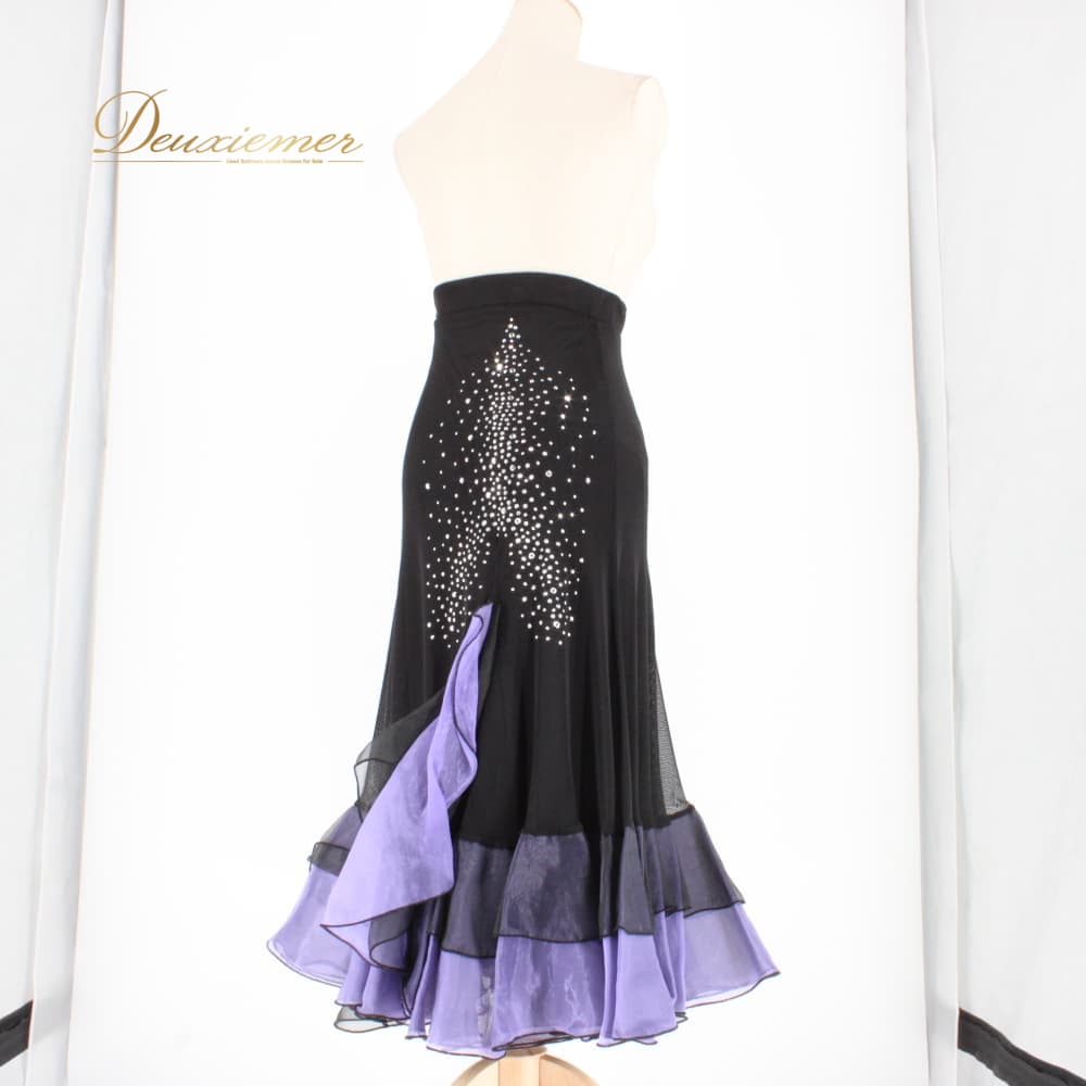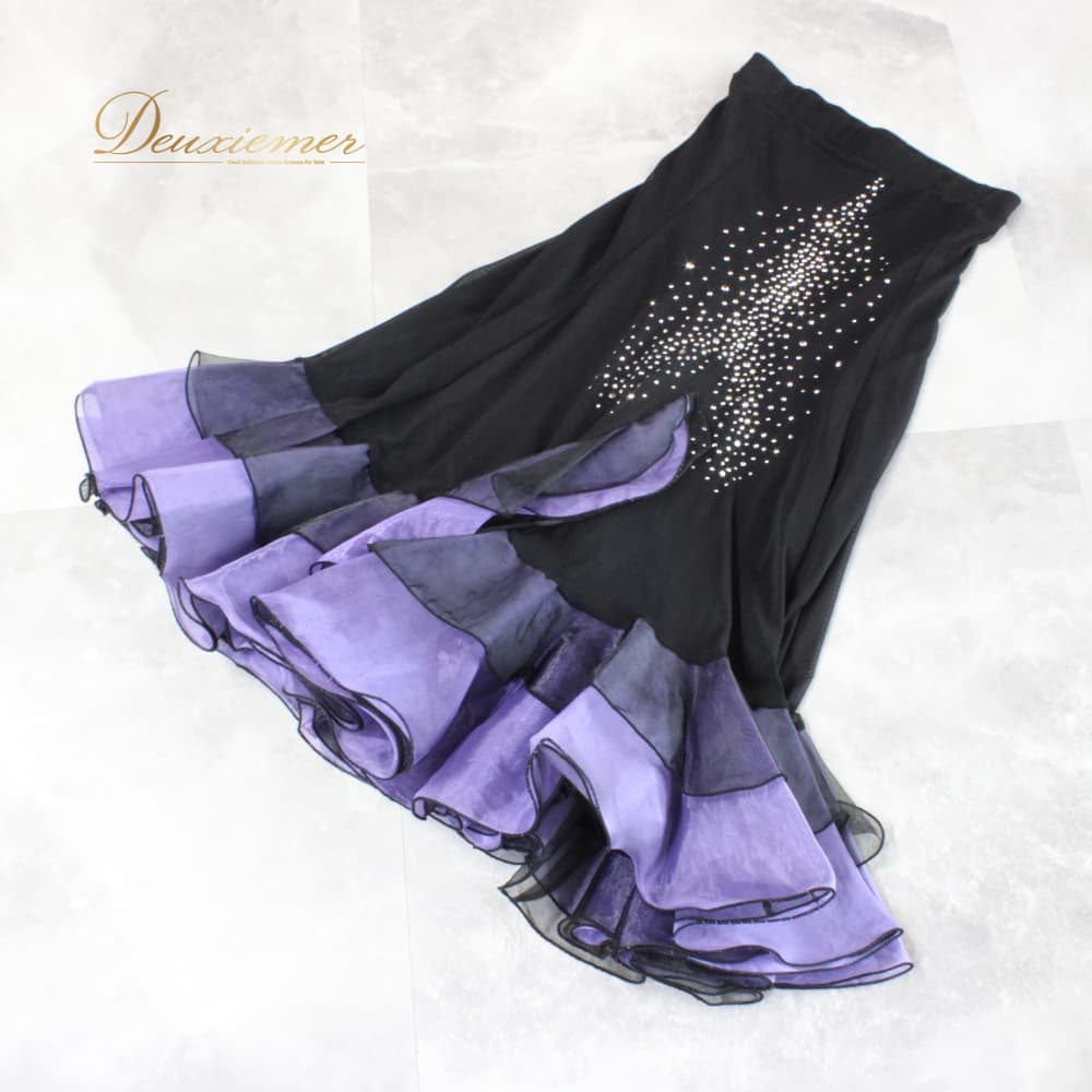 社交ダンス 衣装 ICHIOKU イチオク スカート レッスンウェア ブラック系 パープル系 練習着 紫 黒 フォーマル ラインストーン スタンダード 上品 大人っぽい きれいめ 華やか エレガント かわいい レディース オールシーズン ソシアルダンス ボールルームダンス