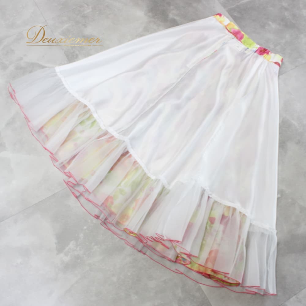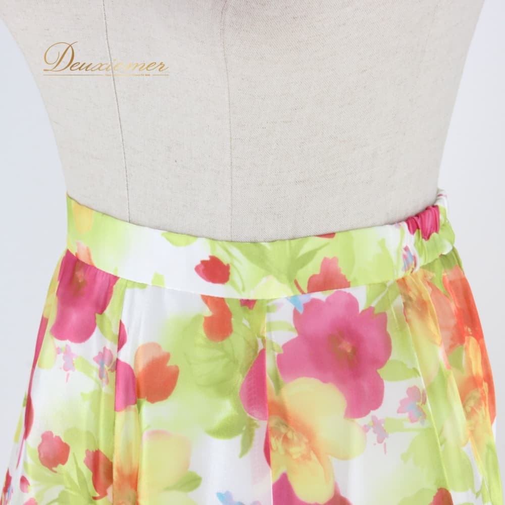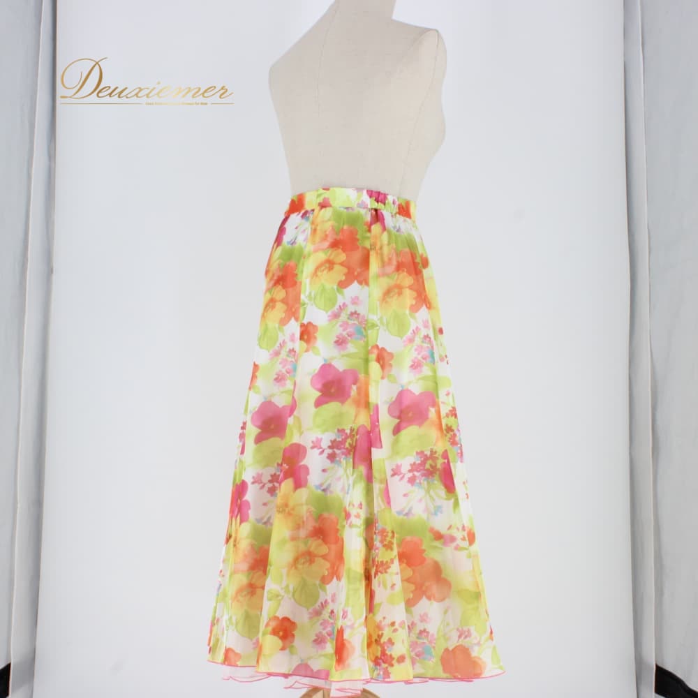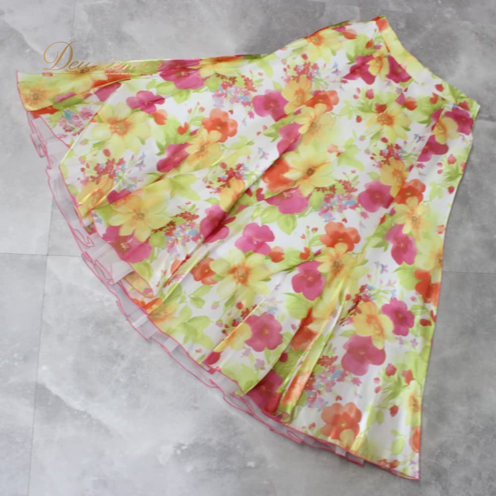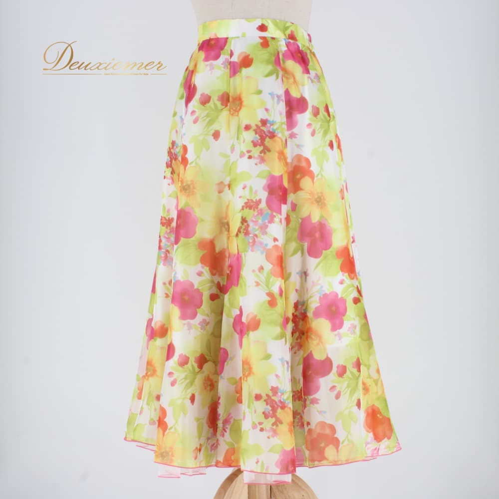 社交ダンス 衣装 スカート レッスンウェア ホワイト系 ピンク系 ブルー系 グリーン系 イエロー系 オレンジ系 練習着 花柄 白 黄色 黄緑 青 スタンダード かわいい フェミニン 上品 華やか 可愛い パニエ レディース オールシーズン きれいめ