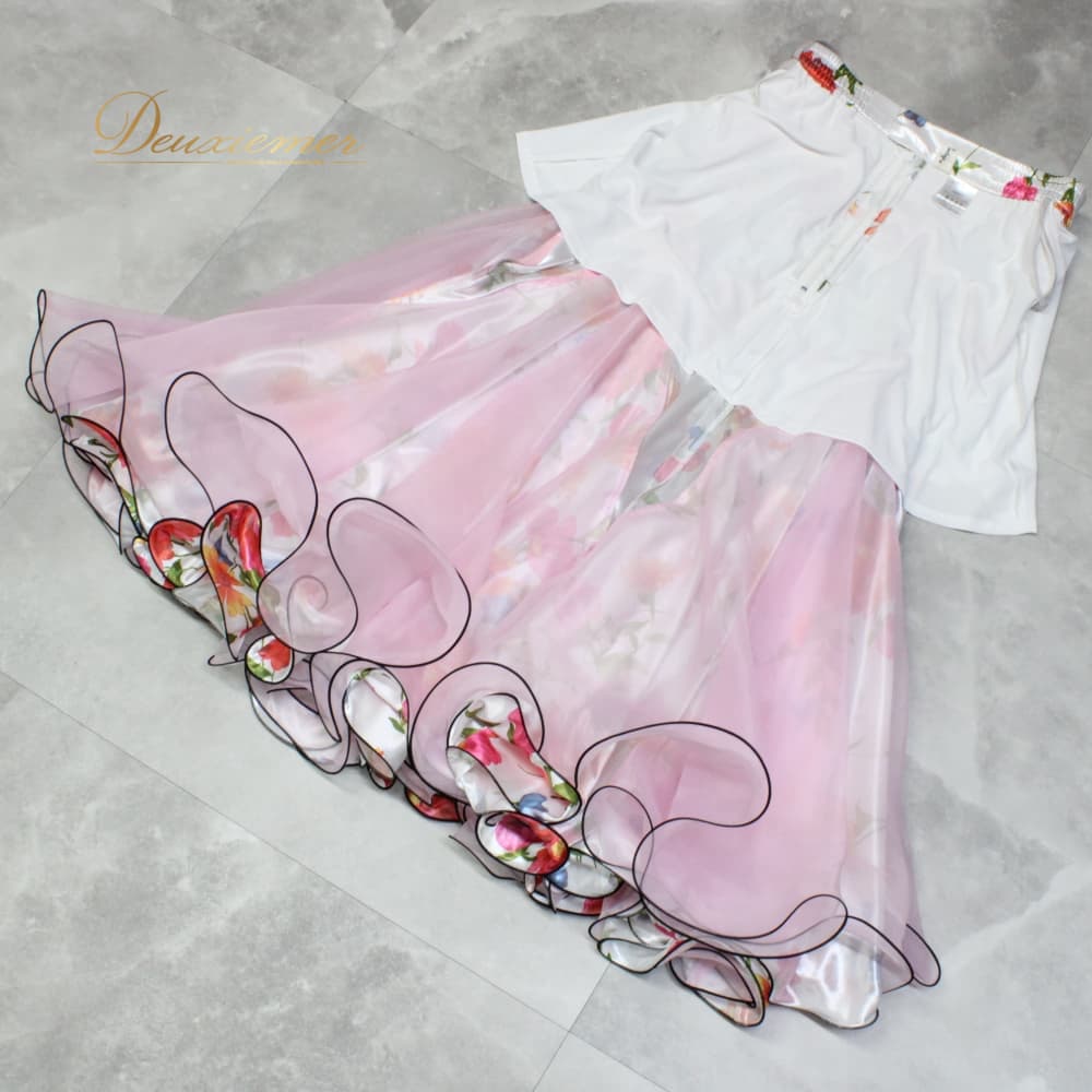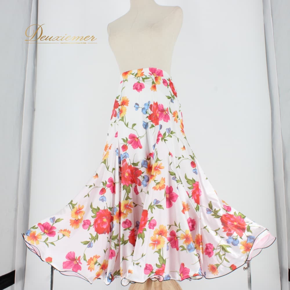 社交ダンス 衣装 Gigo-t Prestage ジゴ スカート レッスンウェア ホワイト系 レッド系 ピンク系 ブルー系 グリーン系 オレンジ系 練習着 花柄 白 赤 緑 青 華やか かわいい フェミニン 花模様 上品 清楚 スタンダード エレガント 大人っぽい きれいめ レディース ドレス用 花柄スカート フレアスカート フリル風 ボリューム感 ひらひら きれい色 フラワープリント フラワー柄 柄物 ロング丈 リゾート風 フェミニンコーデ レッスン用ウェア ダンス練習着 練習用 ドレス練習 対応