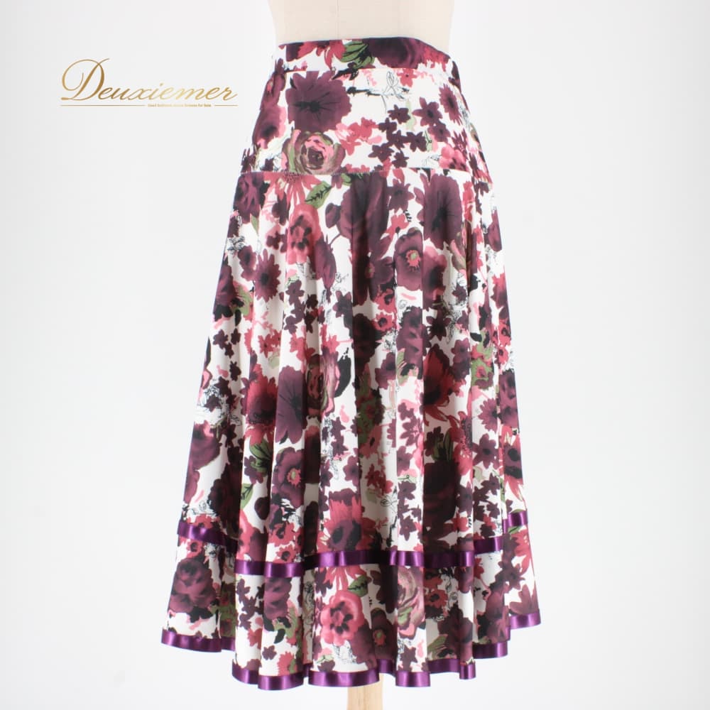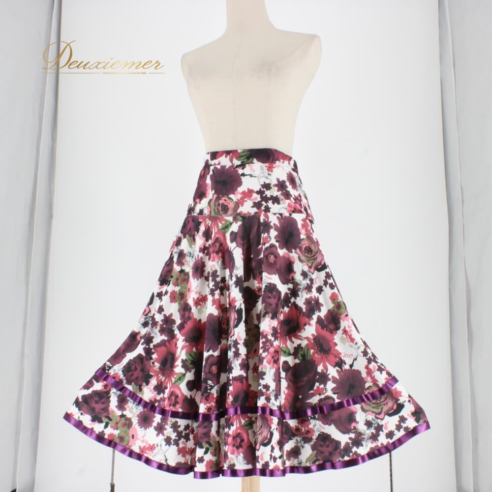 社交ダンス 衣装 ICHIOKU イチオク スカート レッスンウェア ブラック系 ホワイト系 レッド系 ピンク系 パープル系 グリーン系 紫 赤 白 黒 緑 花柄 練習着 スタンダード 上品 大人っぽい きれいめ 華やか エレガント ステージ衣装 発表会 レディース オールシーズン ソシアルダンス ボールルームダンス