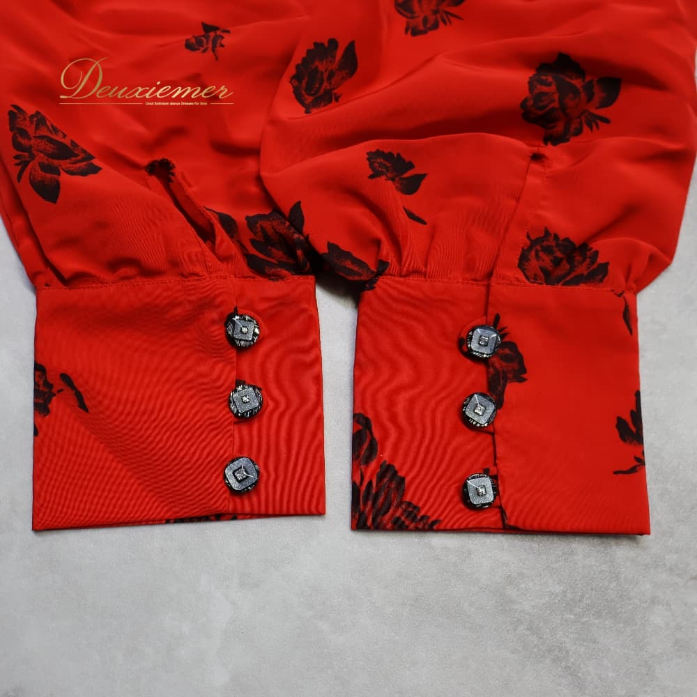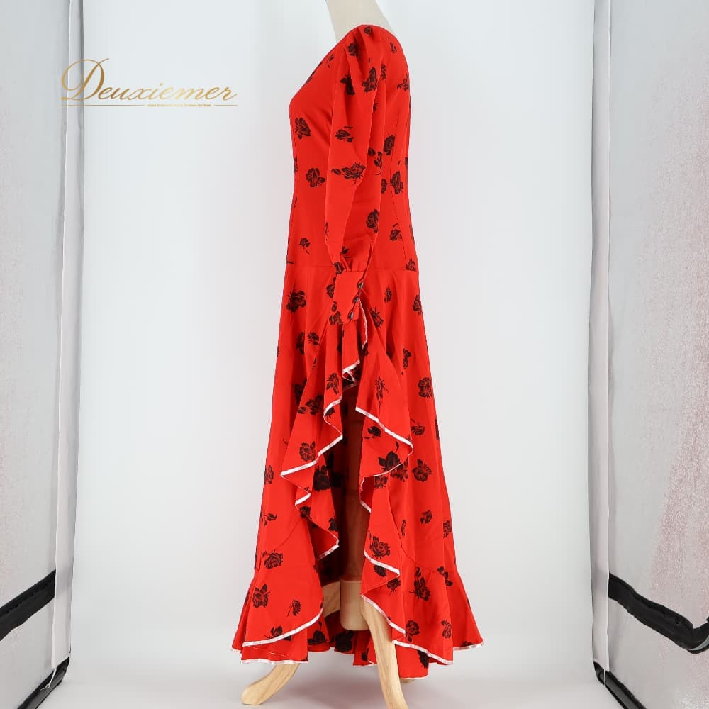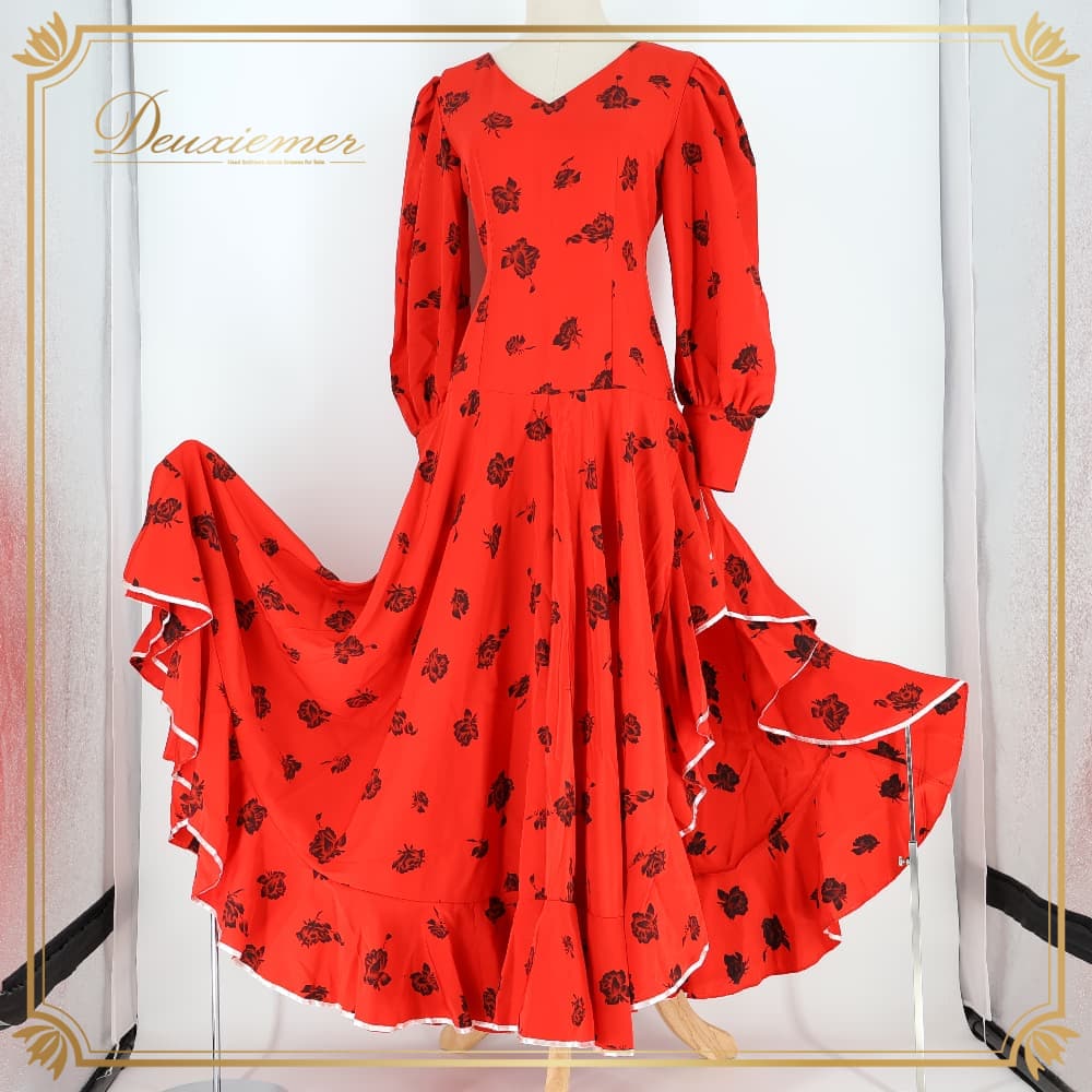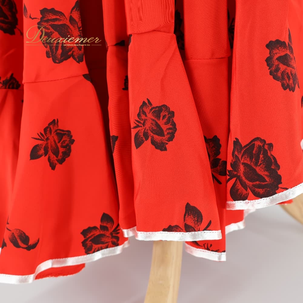 フラメンコ 衣装 ドレス ワンピース レッド系 花柄 花 赤 黒 白 長袖 ボタン ボランテ フリル 薄い スリット かわいい 鮮やか 華やか ダンス衣装 イベント ステージ おしゃれ ふんわり ひらひら ブラック系 ホワイト系