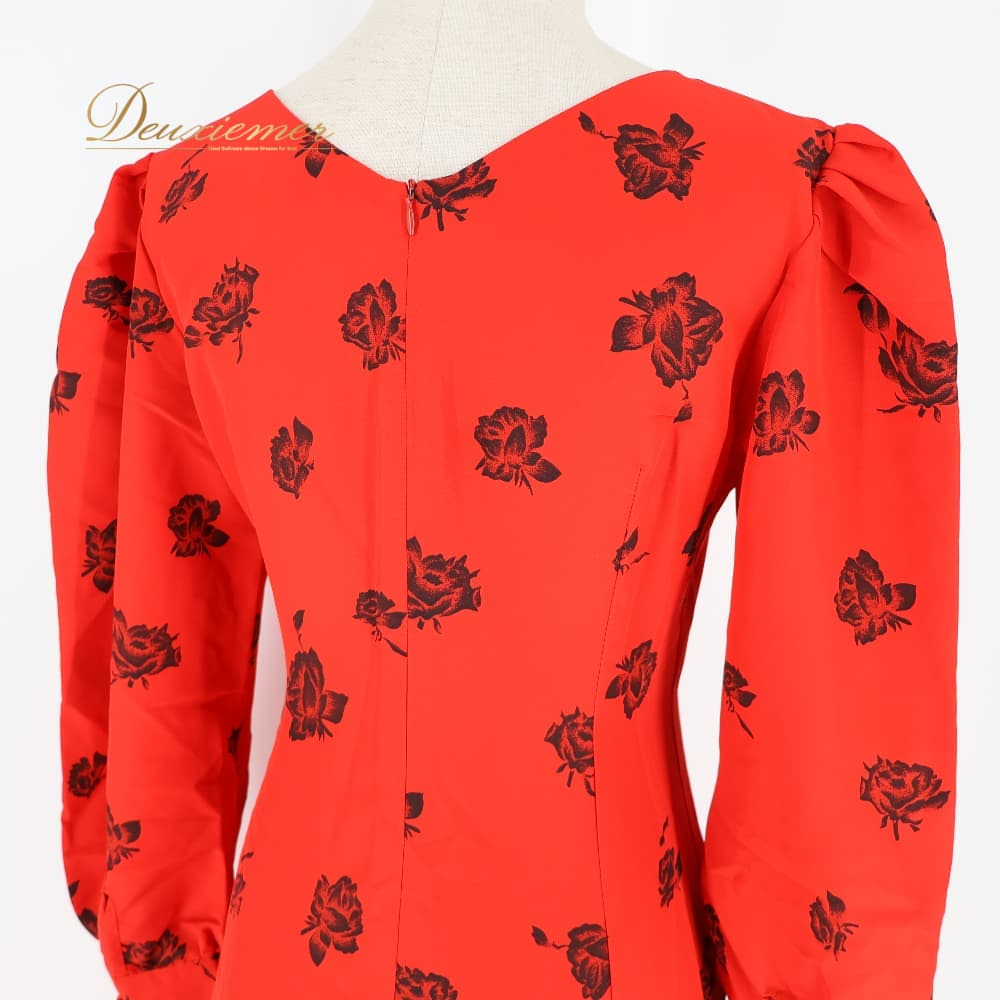 #花柄ワンピース #レッドブラック #赤黒 #かわいい #ガーリー #大人ガーリー #クラシカル #上品コーデ #レディライク #背面ファスナー #ノースリーブ #ロング丈 #マキシ丈 #スリット #スリット入り #ウエストマーク #きれいめ #フォーマル #デートコーデ #ENUTSU