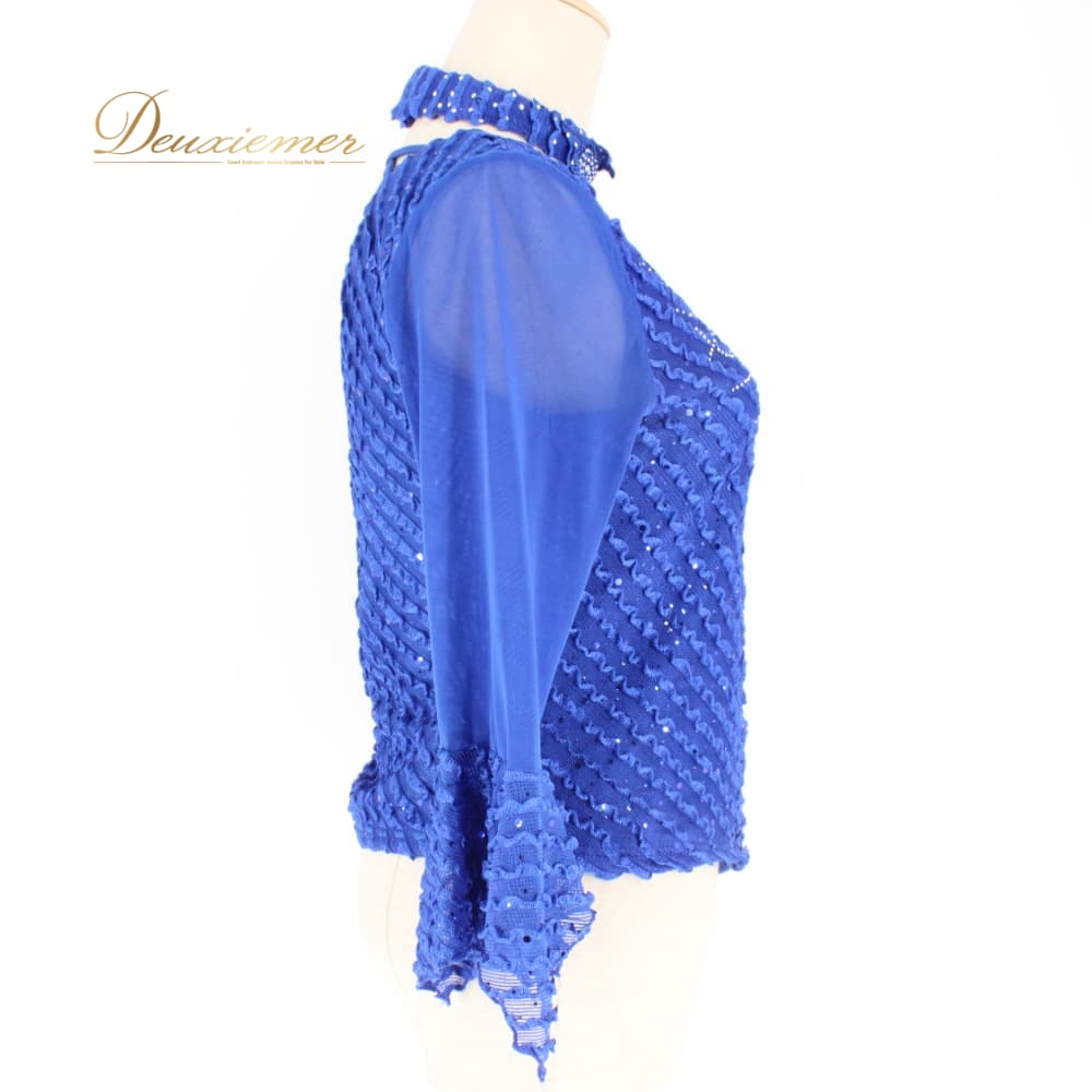 社交ダンス 衣装 ICHIOKU イチオク トップス ブラウス チョーカー レッスンウェア ブルー系 練習着 青 ラインストーン レース 上品 大人っぽい きれいめ 華やか エレガント スタンダード ステージ衣装 発表会 レディース オールシーズン ソシアルダンス ボールルームダンス