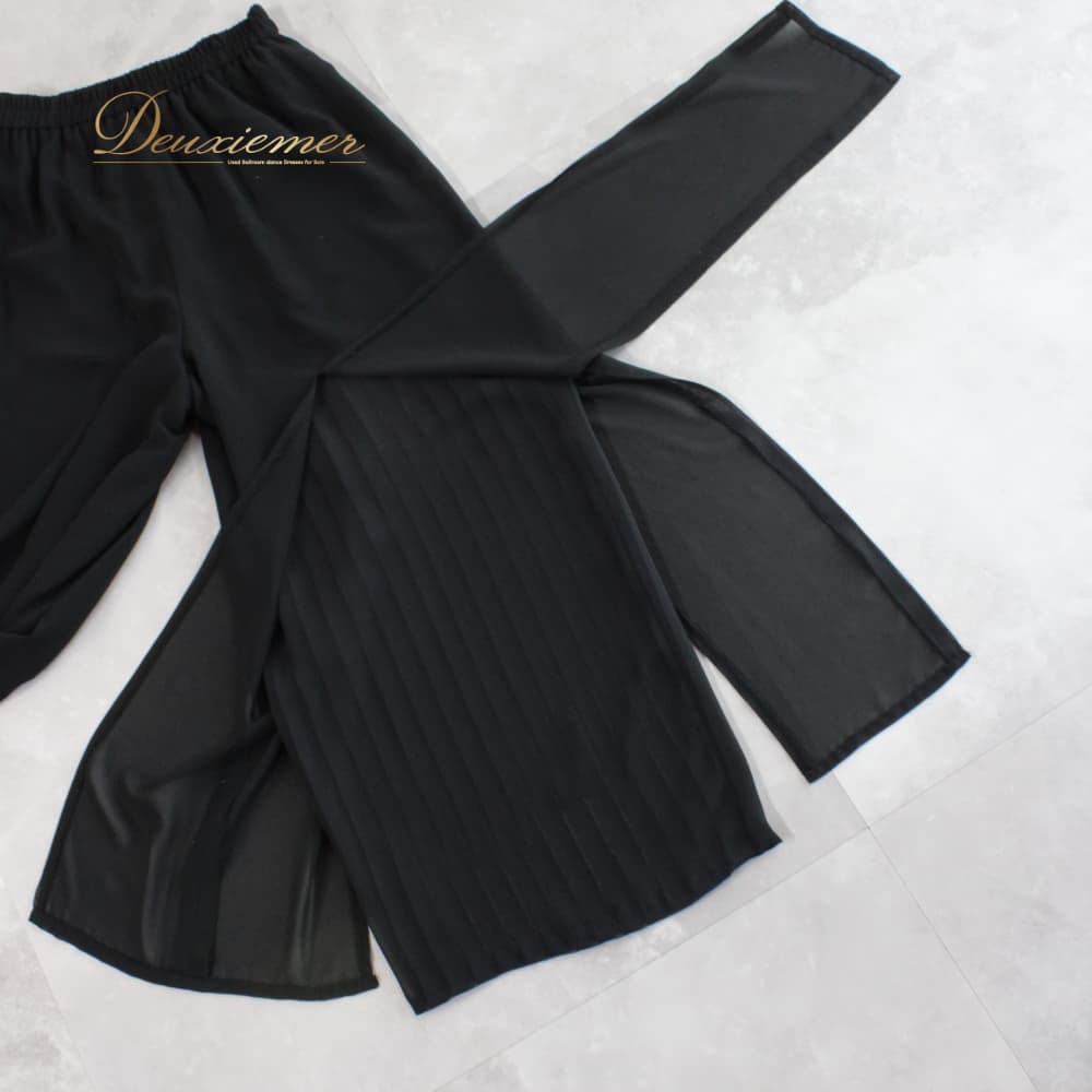 社交ダンス 衣装 BUFF ボトムス パンツ ズボン フォーマル レッスンウェア 練習着 ブラック系 黒 無地 シンプル スタイリッシュ スリット 上品 大人っぽい きれいめ 透け感 レディース オールシーズン ソシアルダンス ボールルームダンス