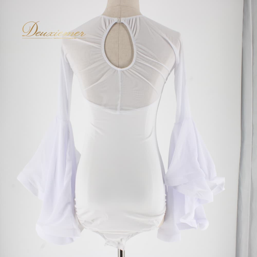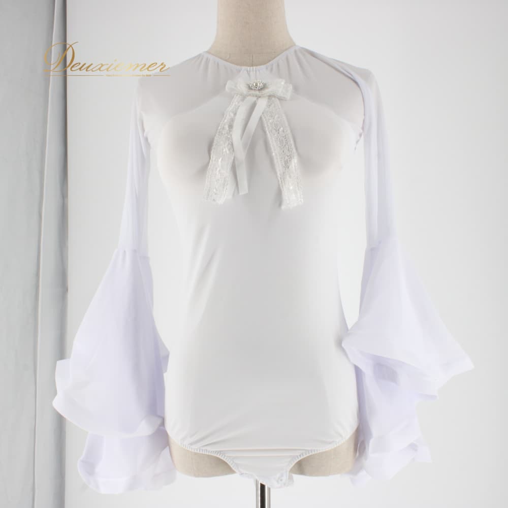 社交ダンス 衣装 トップス ブラウス レオタード レッスンウェア ホワイト系 白 長袖 無地 リボン レース ラインストーン 練習着 胸パッド 清楚 爽やか きれいめ スタンダード 上品 気品 かわいい レディース オールシーズン 着回し スタイリッシュ