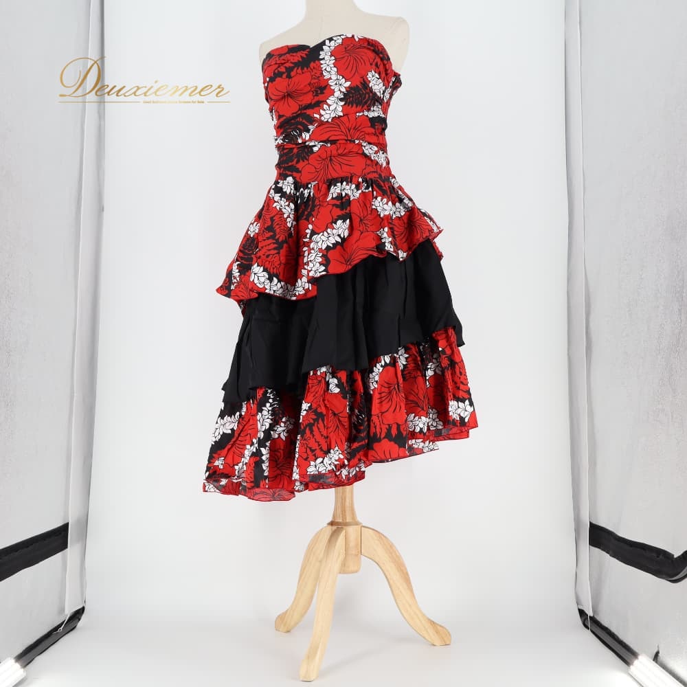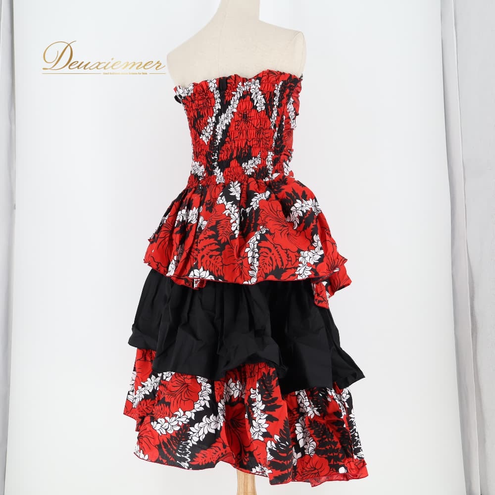 フラダンス 衣装 ALOHA STANDARDS アロハスタンダード ワンピース ドレス レッド系 ハイビスカス柄 ハワイアンプリント 花柄 植物柄 フラワープリント アロハ フラ ダンス レッスン 練習 フリル フレア ブラック系 ホワイト系 赤 黒 白 華やか 鮮やか かわいい おしゃれ Lサイズ フレアワンピース タック風 裾広がり バックゴム 動きやすい ハワイアン ハイビスカス ワイルドフラワー柄 南国プリント 赤黒白 オシャレ 目立つ 派手め 日常コーデ ハレの日衣装 演奏会 発表会 練習用