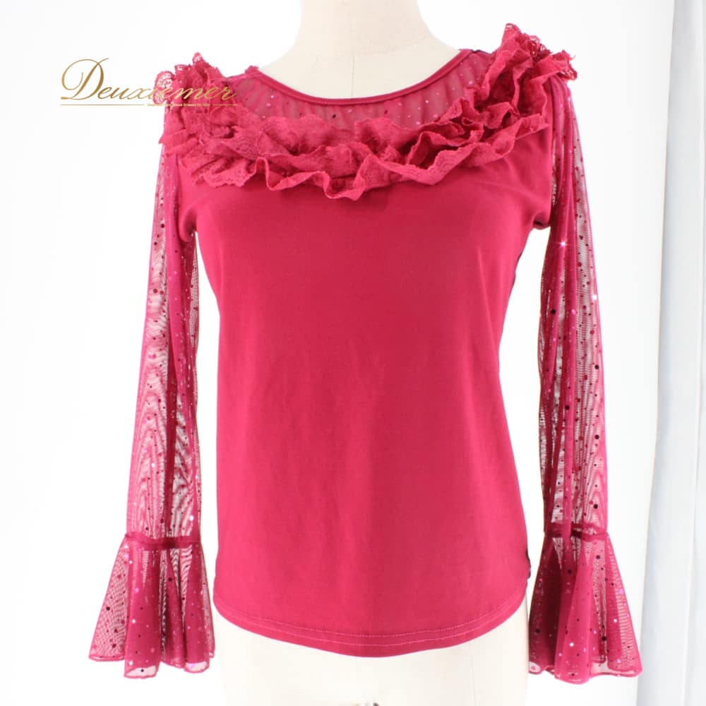 社交ダンス 衣装 ICHIOKU イチオク トップス ブラウス レッスンウェア ピンク系 マゼンタ レース フリル 花柄 スタンダード 練習着 長袖 上品 大人っぽい きれいめ 華やか エレガント ステージ衣装 発表会 レディース オールシーズン ソシアルダンス ボールルームダンス