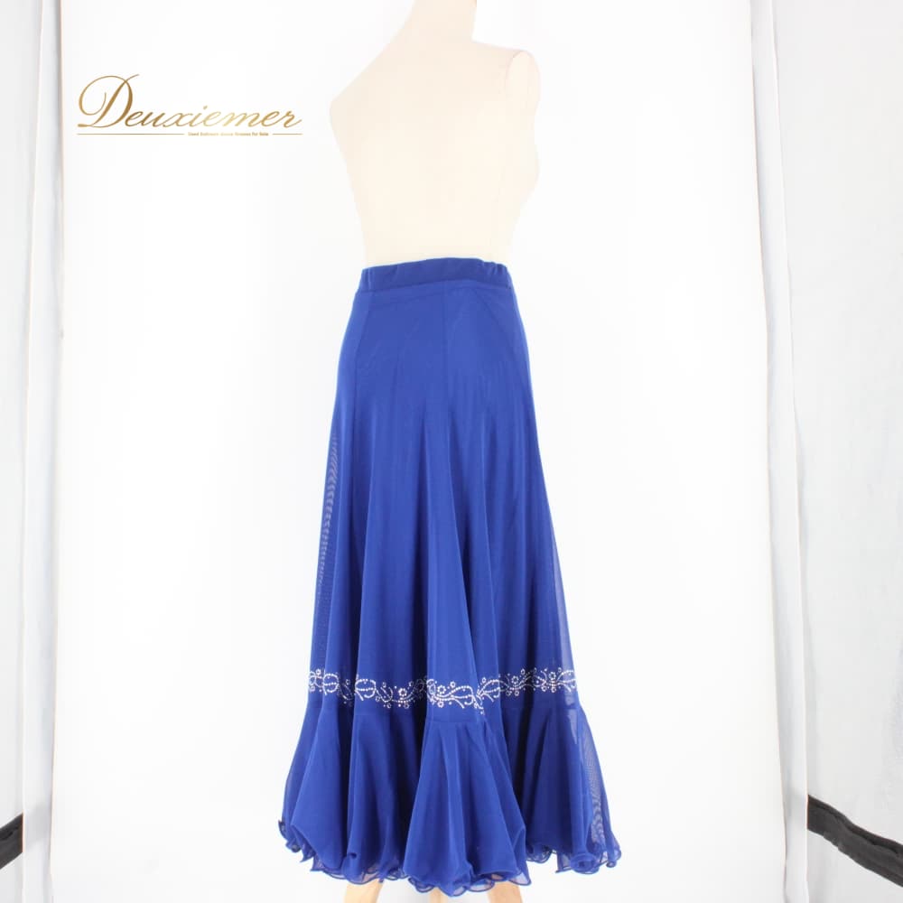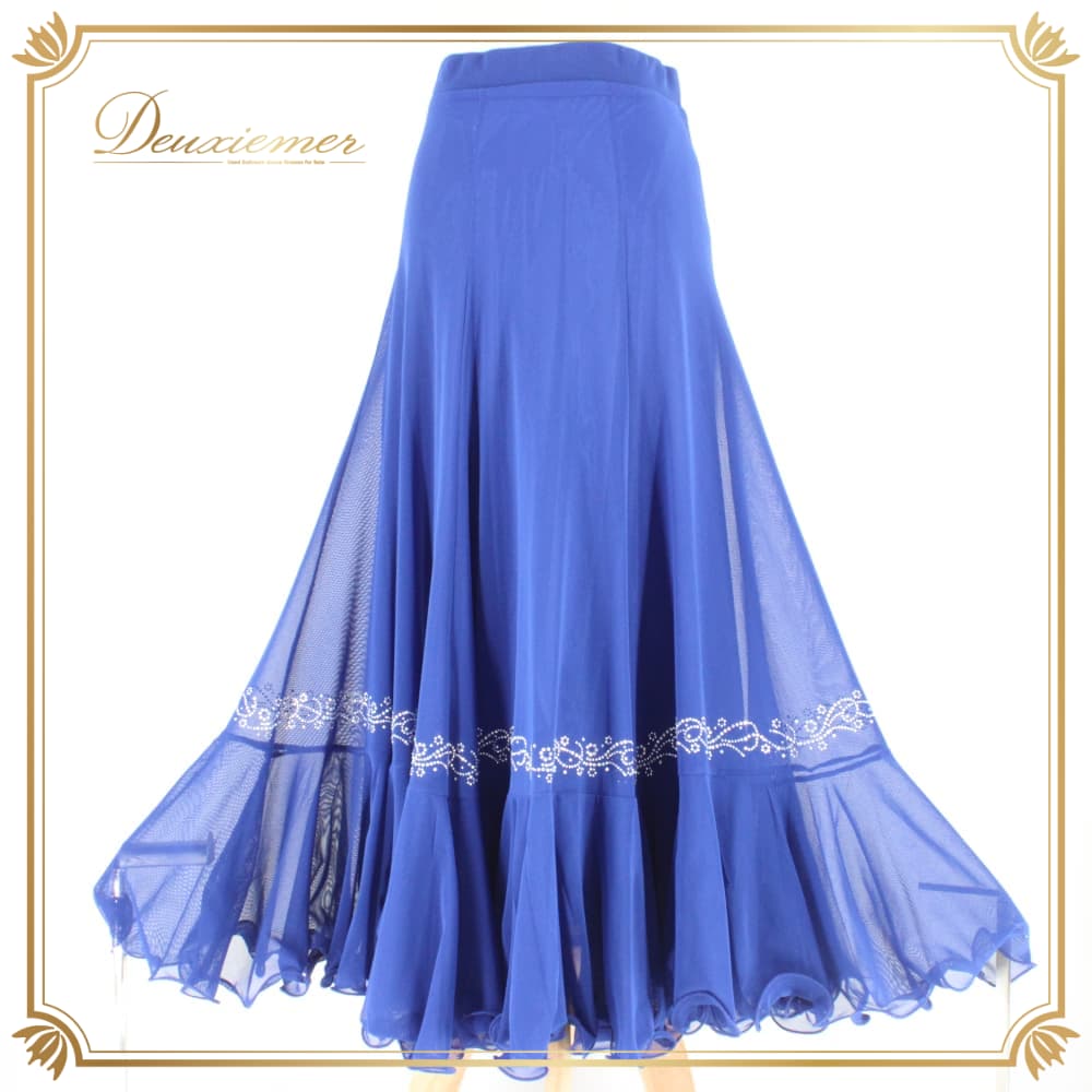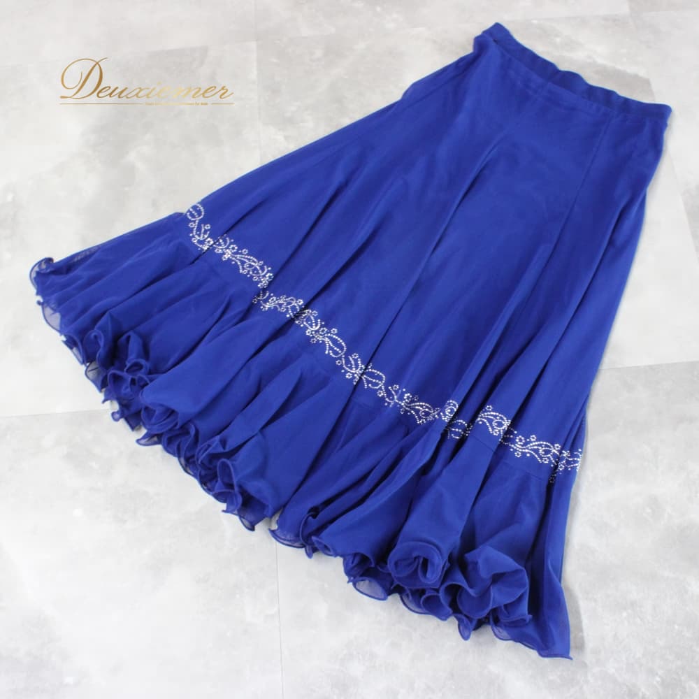 社交ダンス 衣装 Leirena レイリーナ スカート レッスンウェア ブルー系 ラインストーン 練習着 青 レース スタンダード 上品 大人っぽい きれいめ 華やか エレガント ステージ衣装 発表会 レディース オールシーズン かわいい 透け感