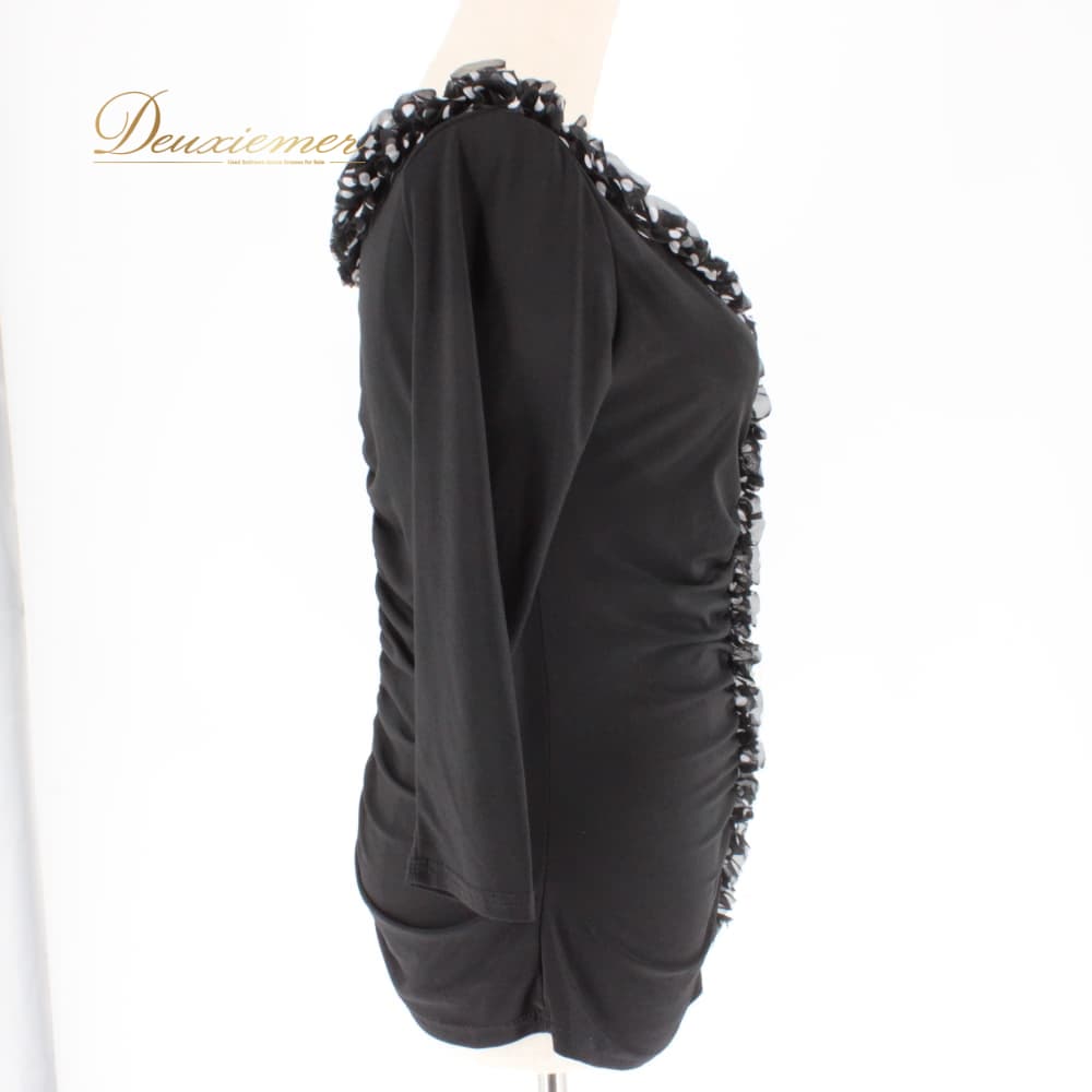 社交ダンス 衣装 ICHIOKU イチオク トップス ブラウス レッスンウェア ブラック系 ホワイト系 黒 白 フリル 水玉 ドット 透け感 レース 長袖 バイカラー モノトーン スタイリッシュ フォーマル 練習着 スタンダード レディース かわいい レトロ ワンピース風 チュニック風 スタイルアップ コーデ レース調 パネル デザイン 伸縮 透け レッスン モダン 競技用 きれいめ オシャレ エレガント かっこいい カジュアルフォーマル ホワイトドット ブラックドット ドットフリル 長袖ブラウス