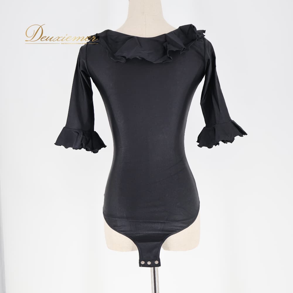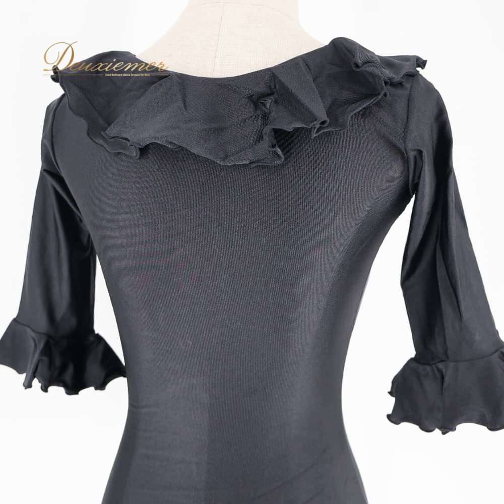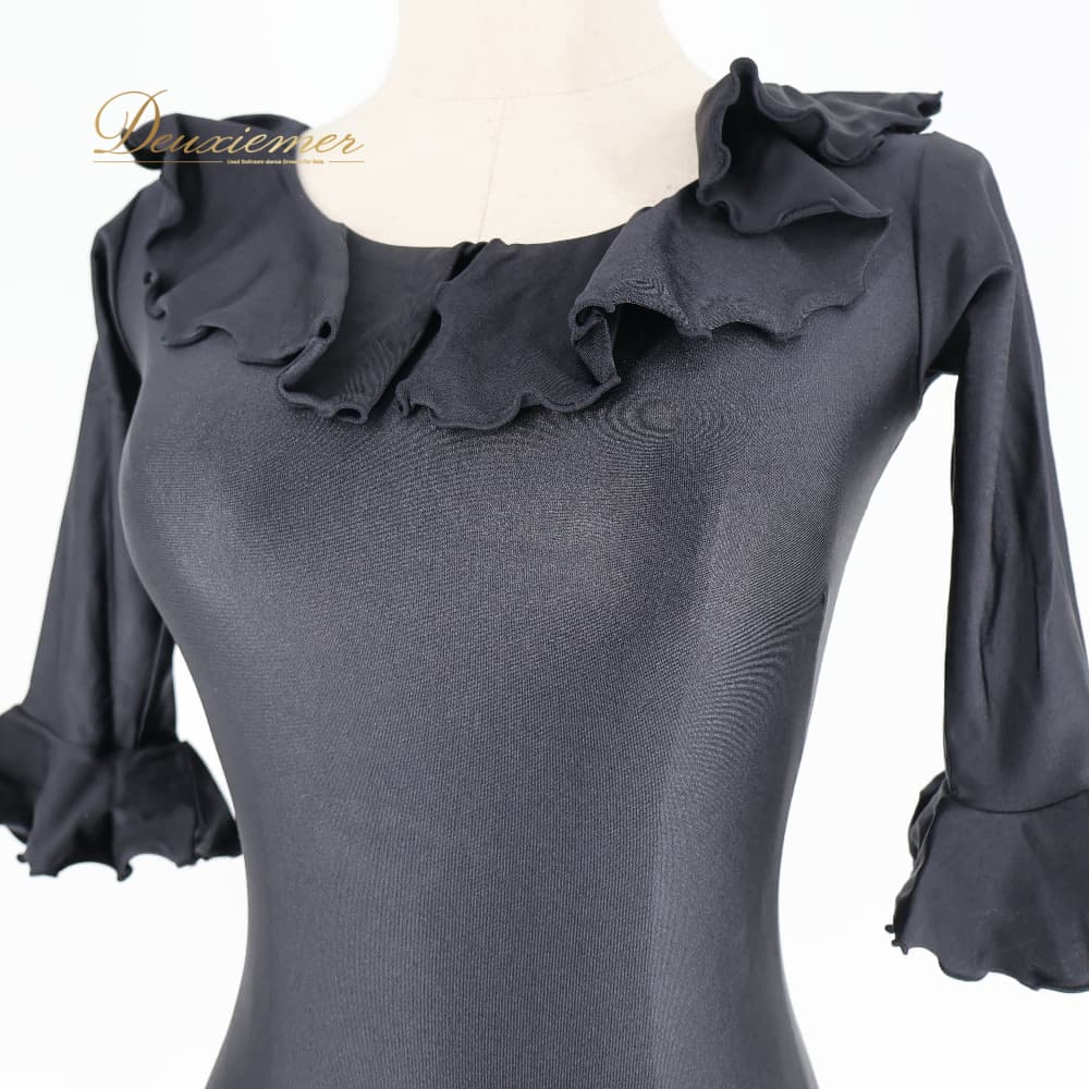 社交ダンス 衣装 Chacott チャコットレオタード レッスンウェア ブラック系 黒 無地 シンプル 練習 レッスン 伸縮 ストレッチ フリル 上品 トップス かわいい ダンス衣装 バレエ イベント ステージ