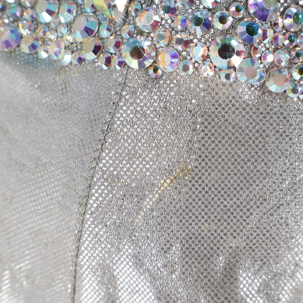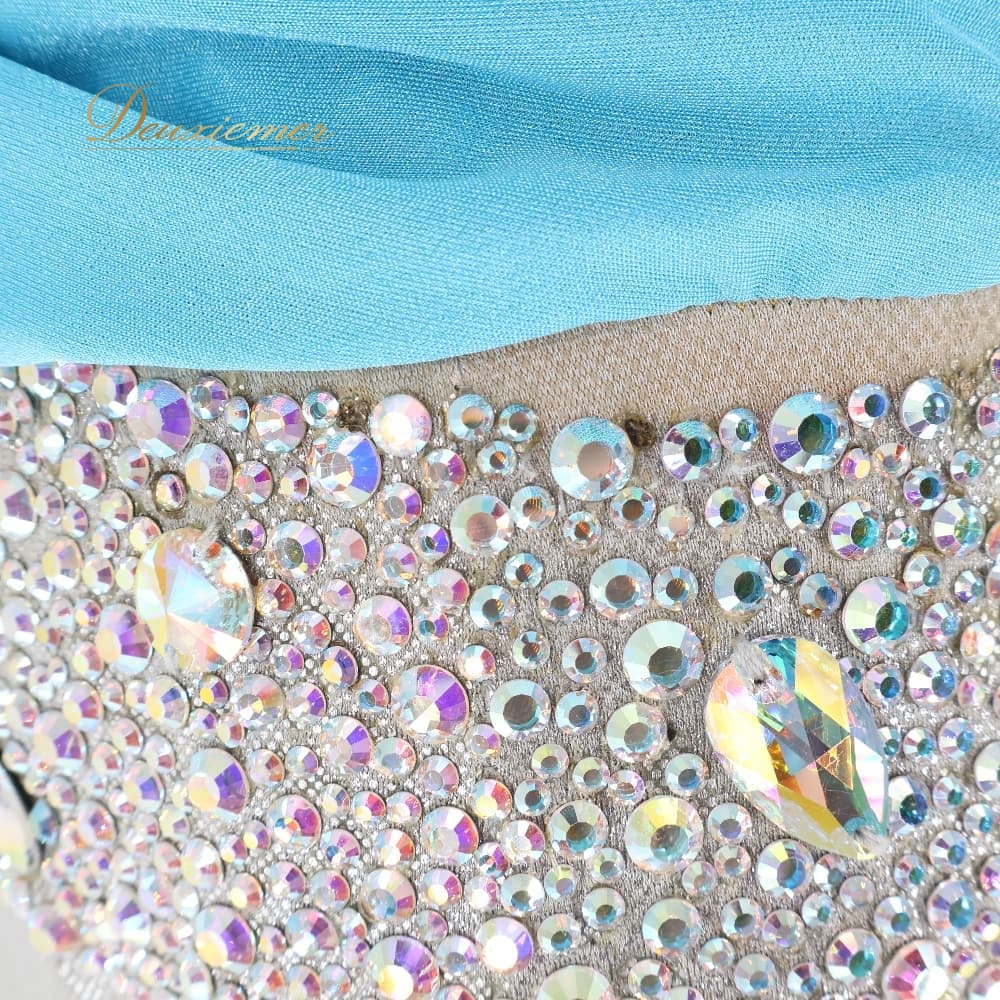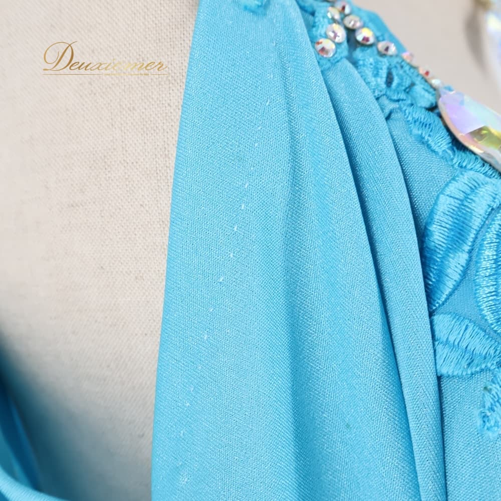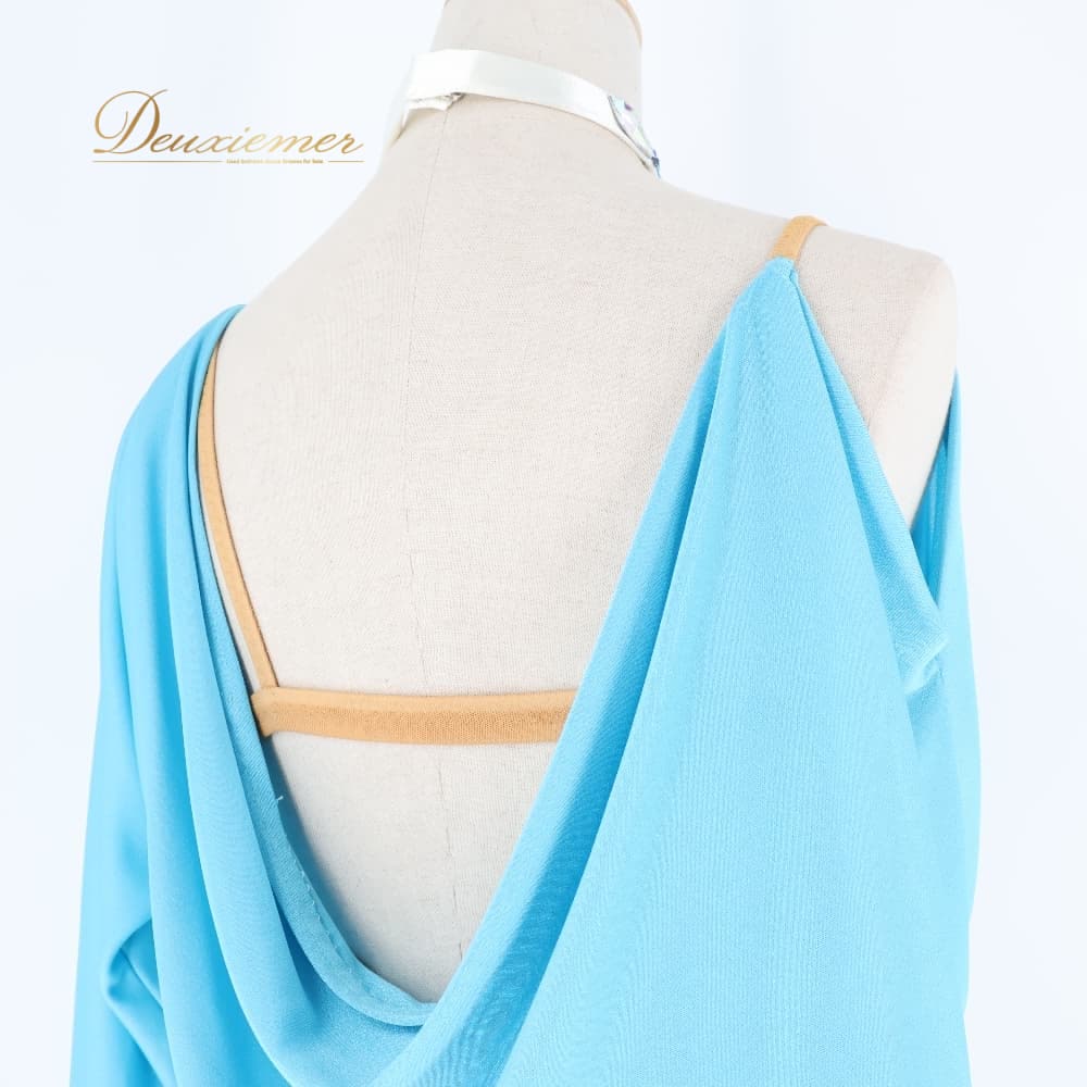 社交ダンス 衣装 ドレス ワンピース ラテン ホワイト系 ブルー系 シルバー系 水色 白 デモ 競技 ダンス パーティ 発表会 フリンジ キラキラ 光沢 ステージ衣装 エレガント