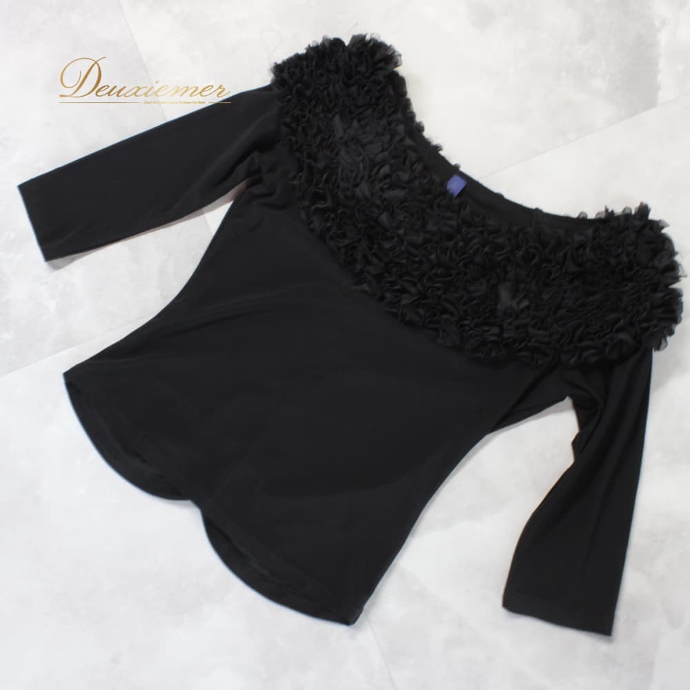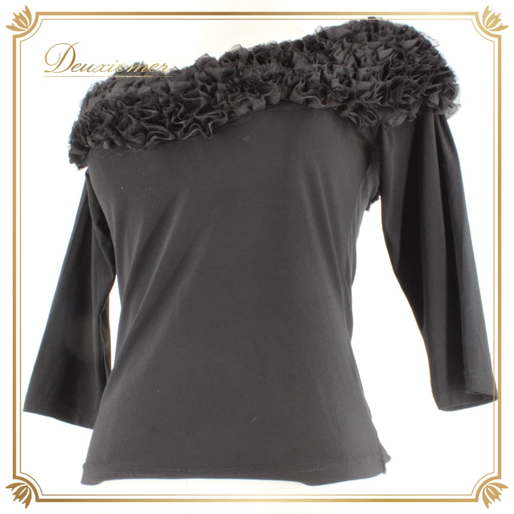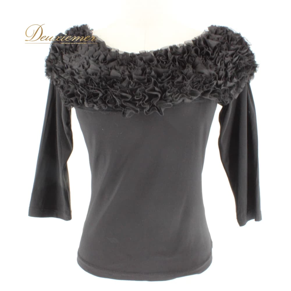 社交ダンス 衣装 Leirena レイリーナ トップス カットソー レッスンウェア ブラック系 練習着 黒 フォーマル フリル レース スタンダード 無地 シンプル 上品 気品 きれいめ シック レディース 袖あり オールシーズン ソシアルダンス