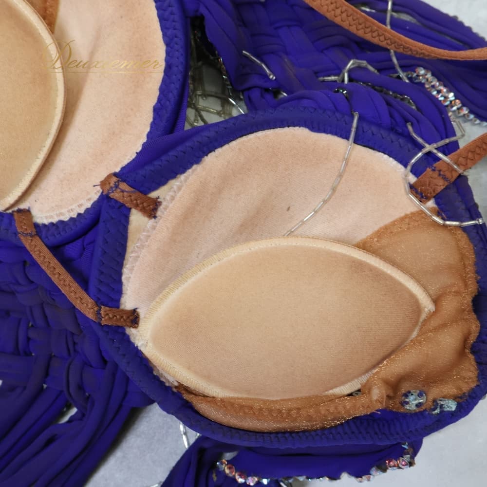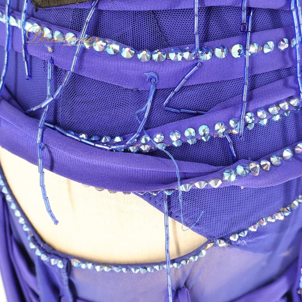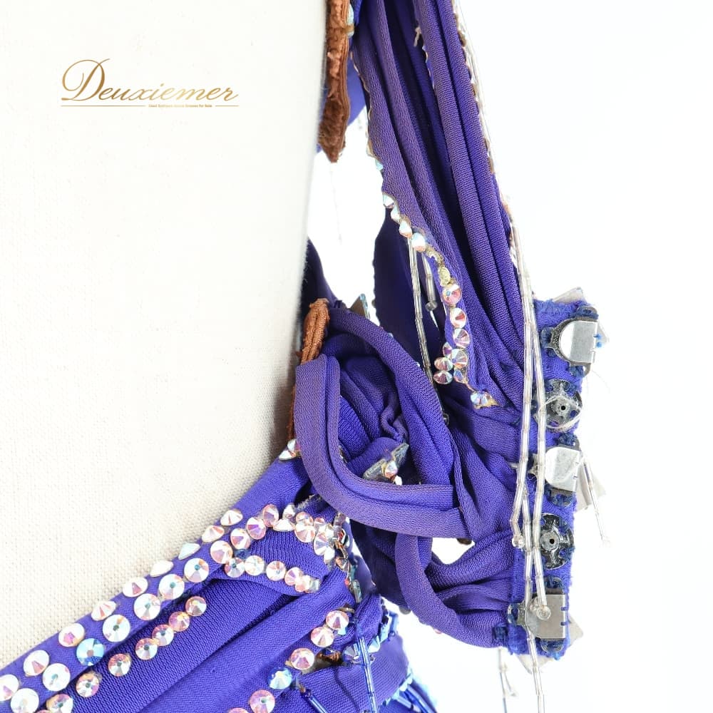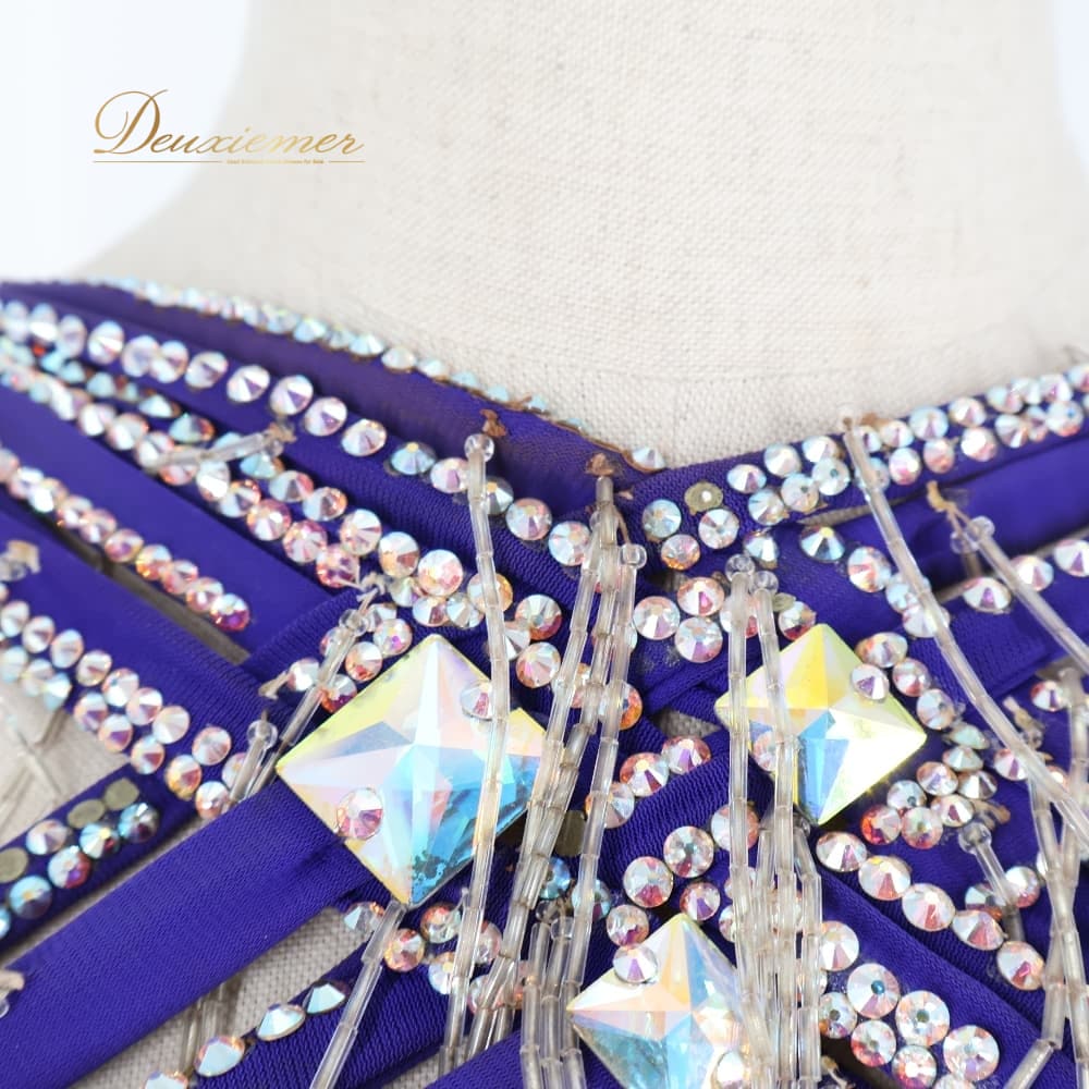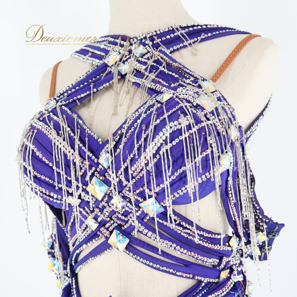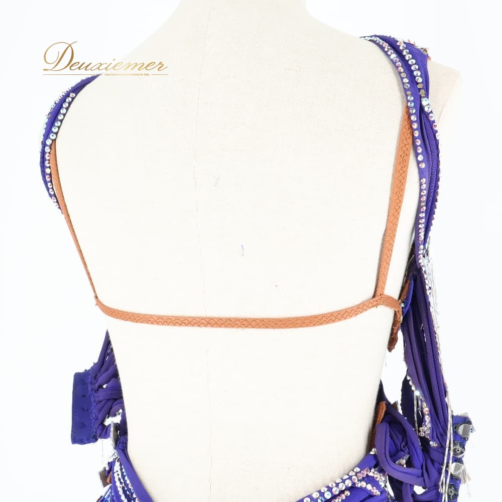 社交ダンス 衣装 TAKA DANCE タカダンス ドレス ワンピース ラテン パープル系 ブルー系 青 紫 羽 レース 豪華 華やか デモ 競技 ダンス パーティ 発表会 ラテン衣装 羽根 フォーマル