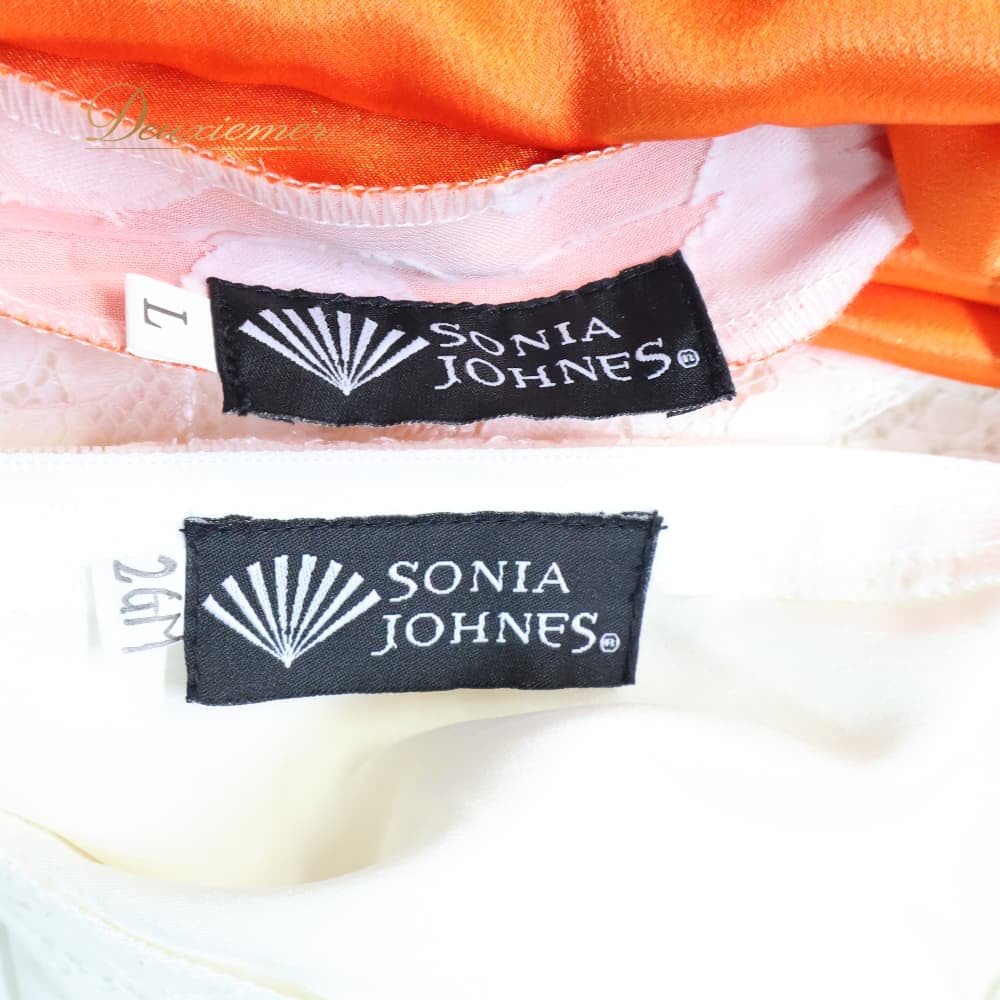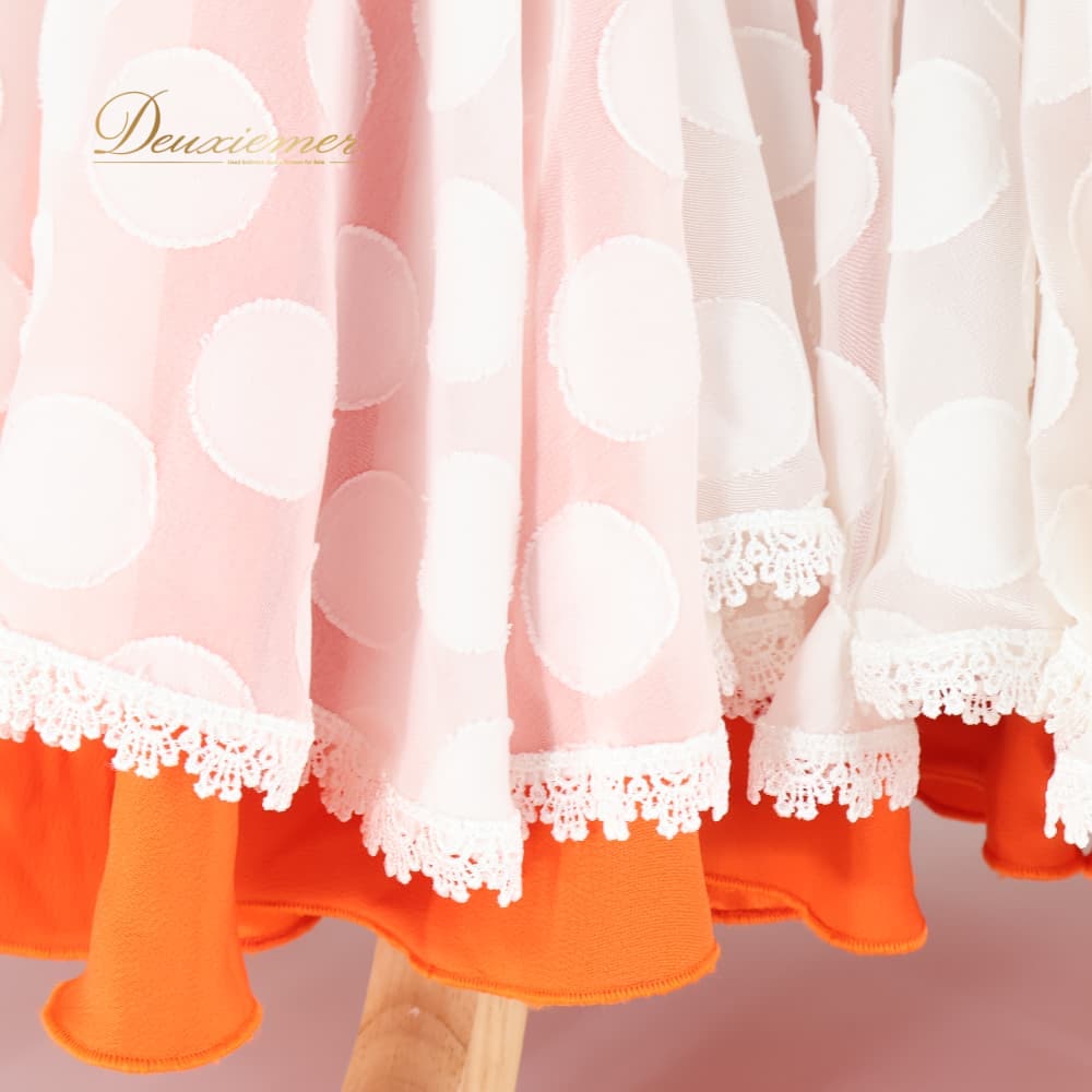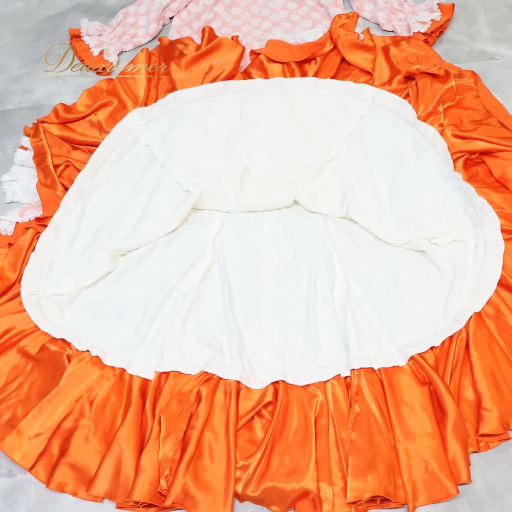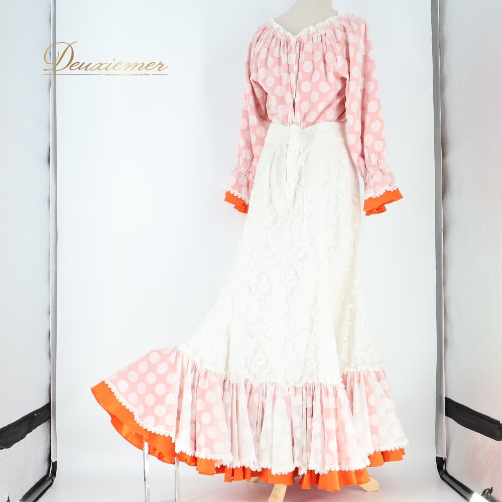 フラメンコ 衣装 SONIA JOHNES ソニアジョーンズ ツーピース セットアップ 上下セット ホワイト系 オレンジ系 白 水玉 ドット フリル レース ハイウエスト 長袖 ダンス パーティ 発表会 ダンス衣装 レディース