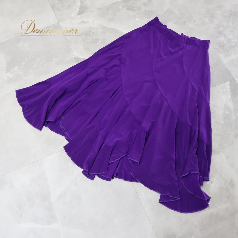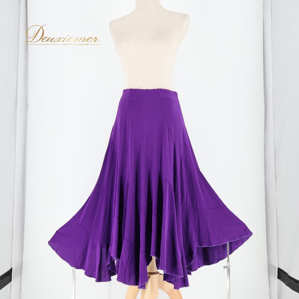 #社交ダンス #社交ダンススカート #ダンス衣装 #ダンスドレス #競技ダンス #競技用 #ラテンダンス #スタンダード #フレアスカート #パープル #鮮やかカラー #無地 #シンプル #create-sun #ウエストゴム #伸縮性あり #ポリエステル100 #レディース #ダンスファッション #ENUTSU