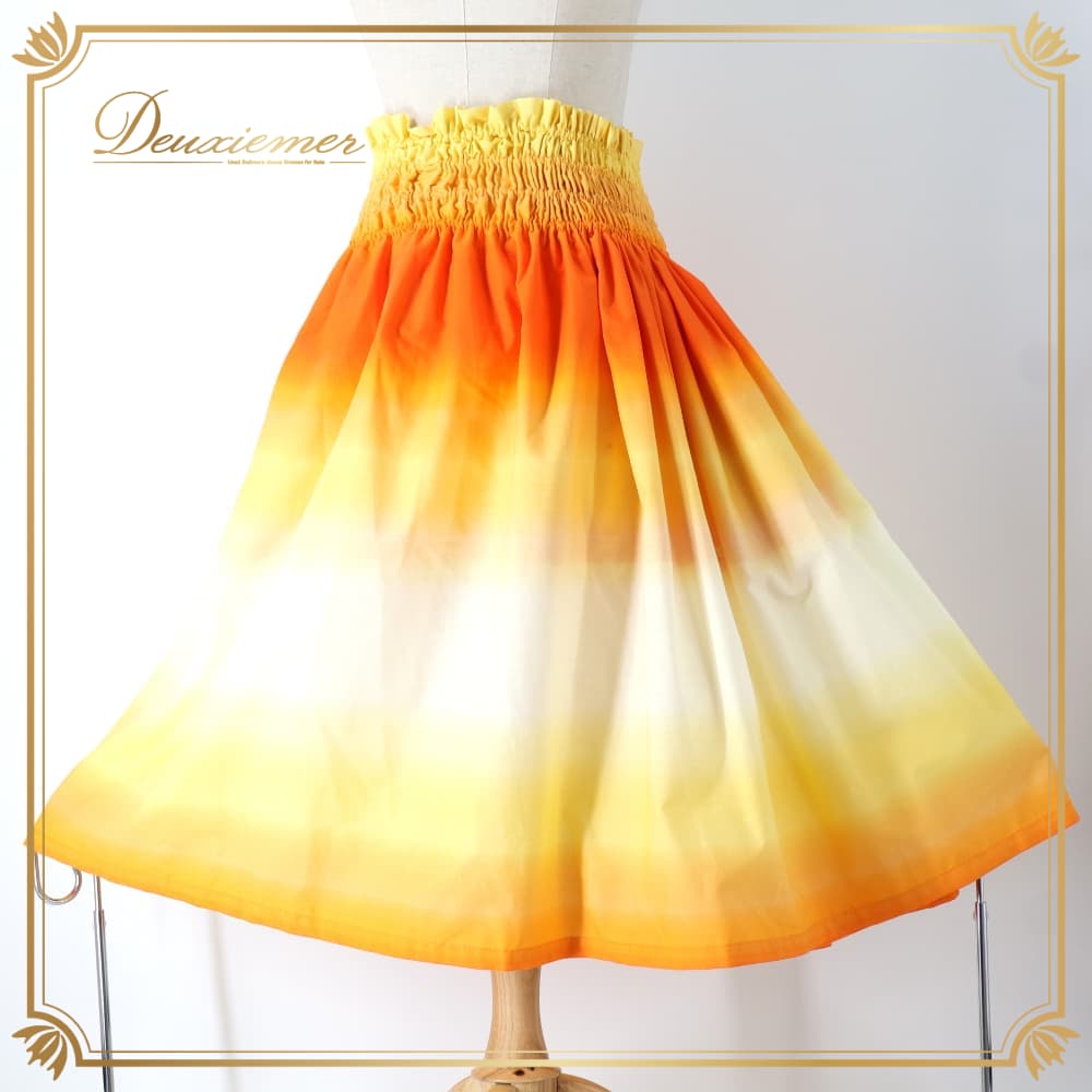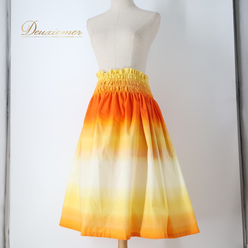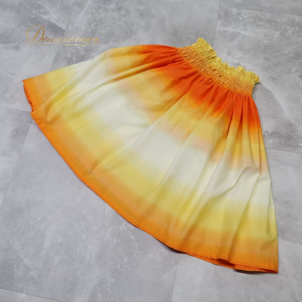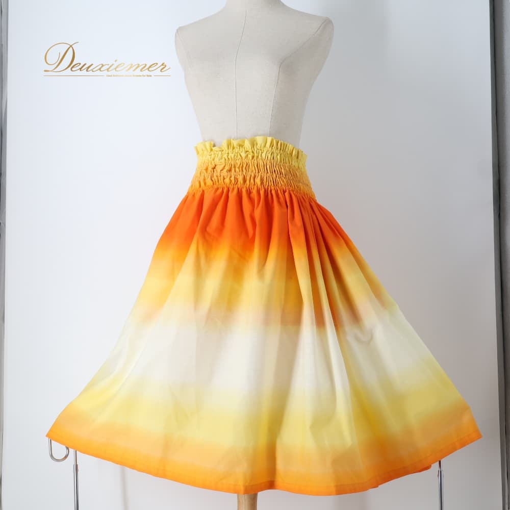 #フラダンス #フラ #フラダンス衣装 #フラダンススカート #フラ衣装 #ハワイアン #ハワイ #グラデーション #フレアスカート #スカート #オレンジ #イエロー #ホワイト #カラフル #鮮やか #ウエストゴム #伸縮性 #レッスン #発表会 #ENUTSU