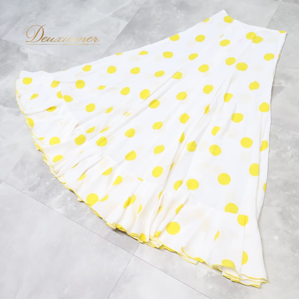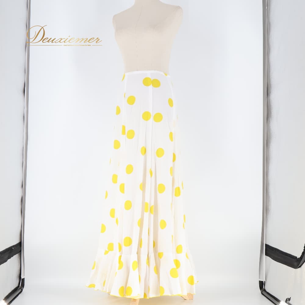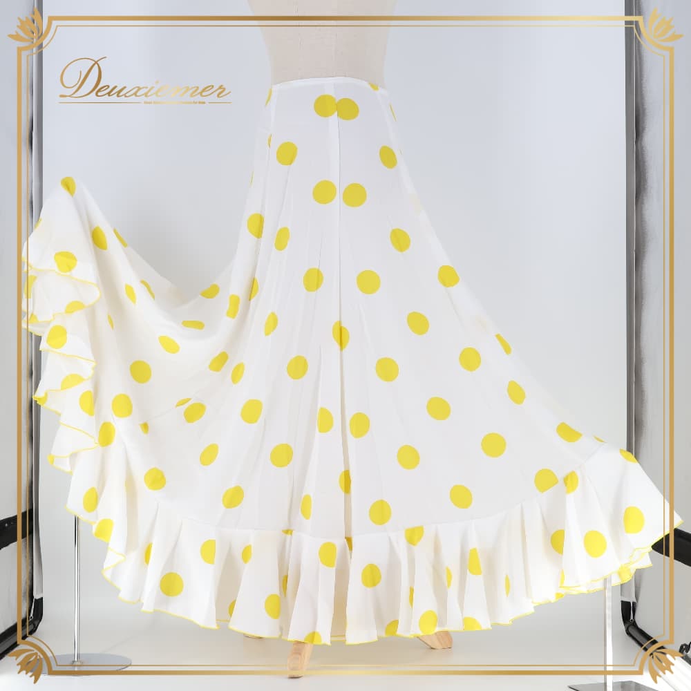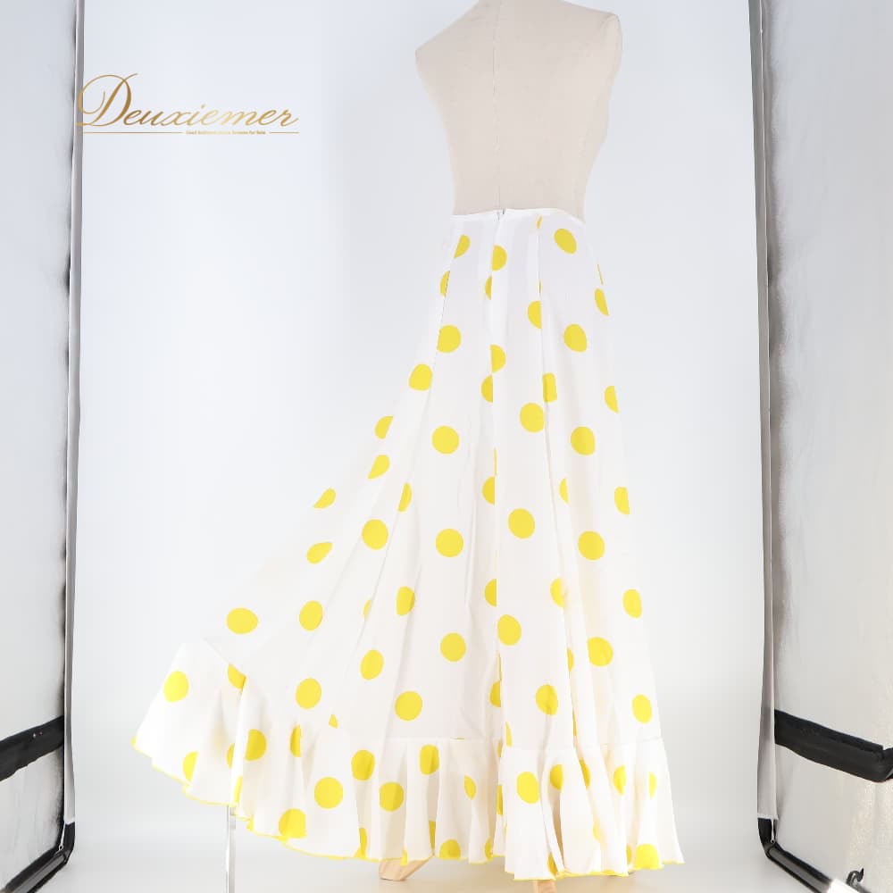 フラメンコ 衣装 HERMOSA IBERIA エルモサ イベリア ファルダ ペチコート スカート ホワイト系 イエロー系 白 黄色 水玉 ドット ボランテ フリル 軽い 薄い ダンス パーティ 発表会 ドット柄 ステージ衣装 フラメンコ衣装 ダンス衣装 イベント 軽量 薄手