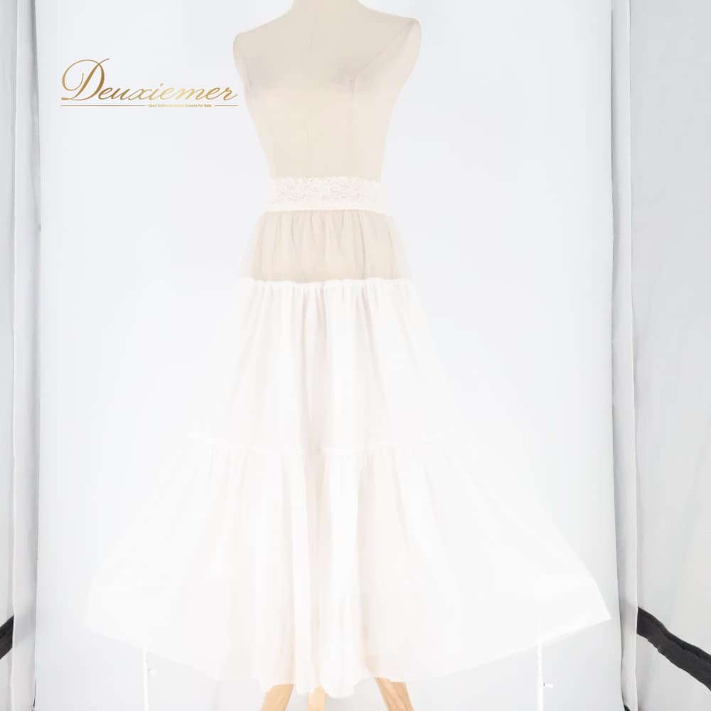 #ペチコート #レースペチコート #ふわふわ #華やか #ホワイトコーデ #ホワイト #ガーリー #フェミニン #春コーデ #夏コーデ #透け防止 #インナー #ウエストゴム #ウエスト楽ちん #レディースファッション #ポリエステル100 #サイズM #上品コーデ #ボリューム #ENUTSU