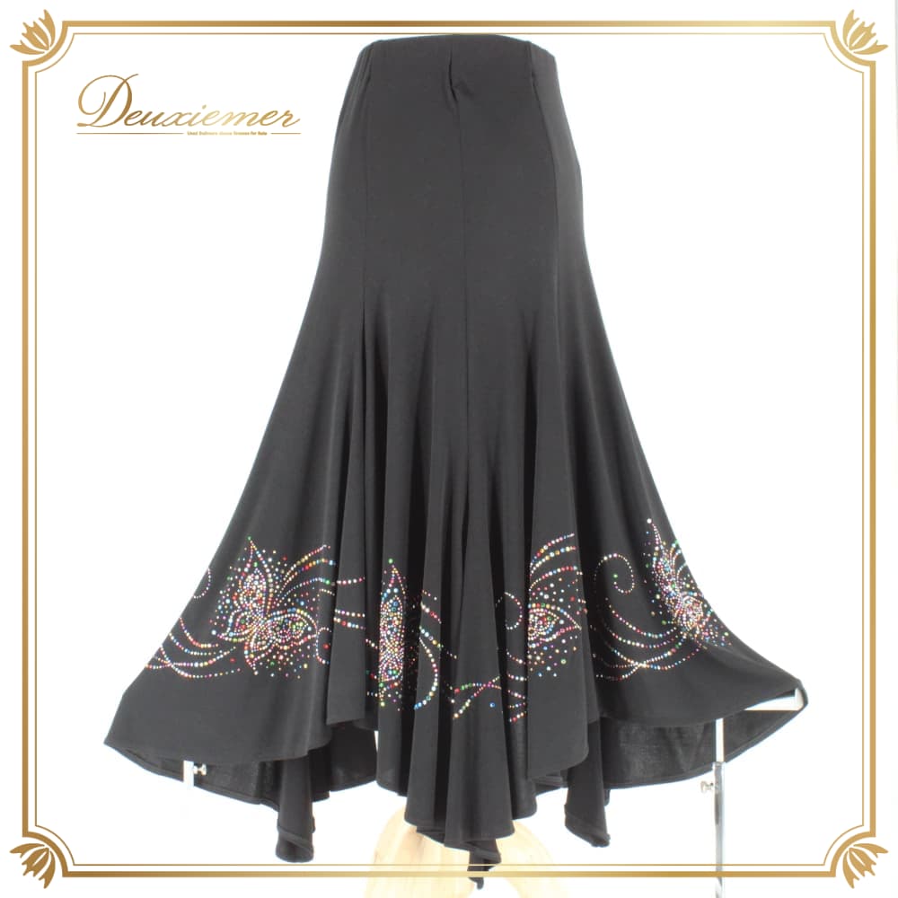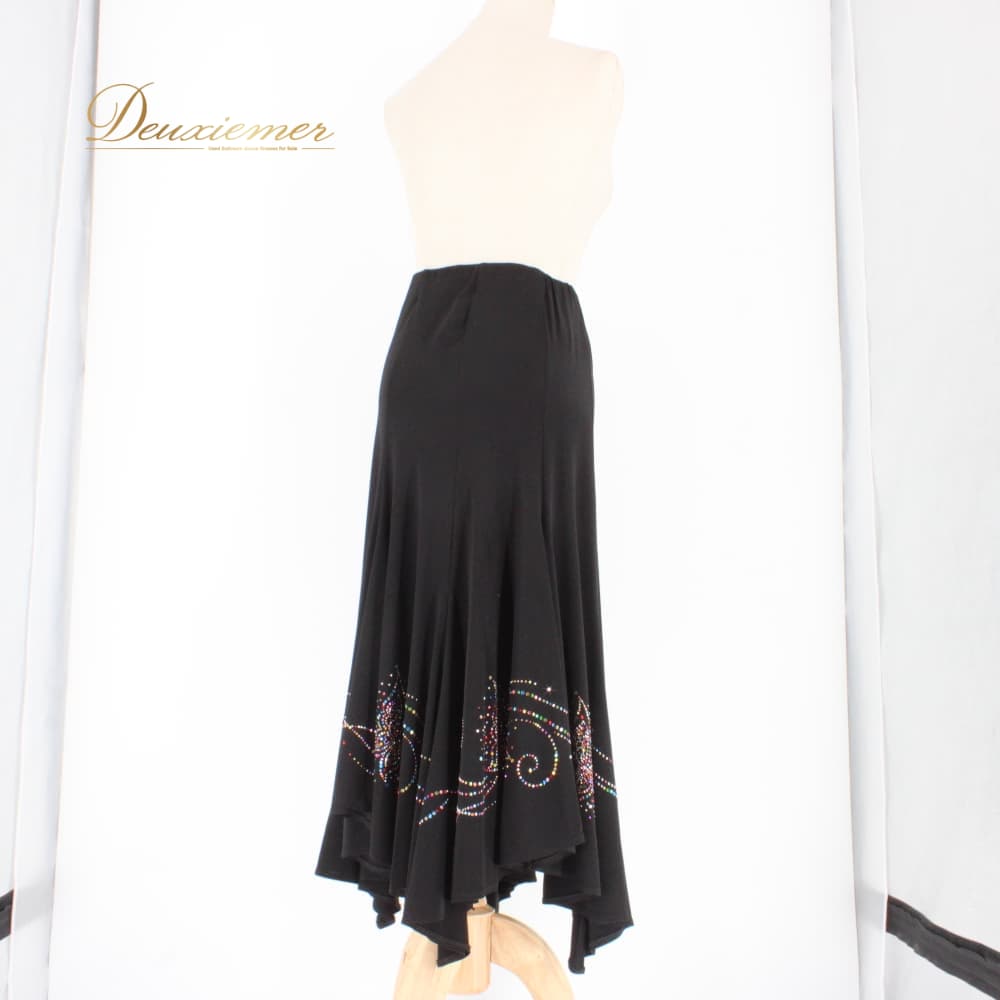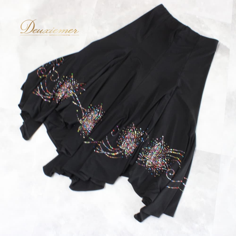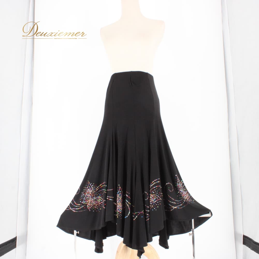 社交ダンス 衣装 スカート レッスンウェア ブラック系 ゴールド系 ピンク系 グリーン系 ブルー系 イエロー系 ラインストーン カラフル 黒 緑 青 黄色 金 練習用 練習着 フォーマル スタイリッシュ エレガント キラキラ 上品 大人っぽい きれいめ 華やか エレガント