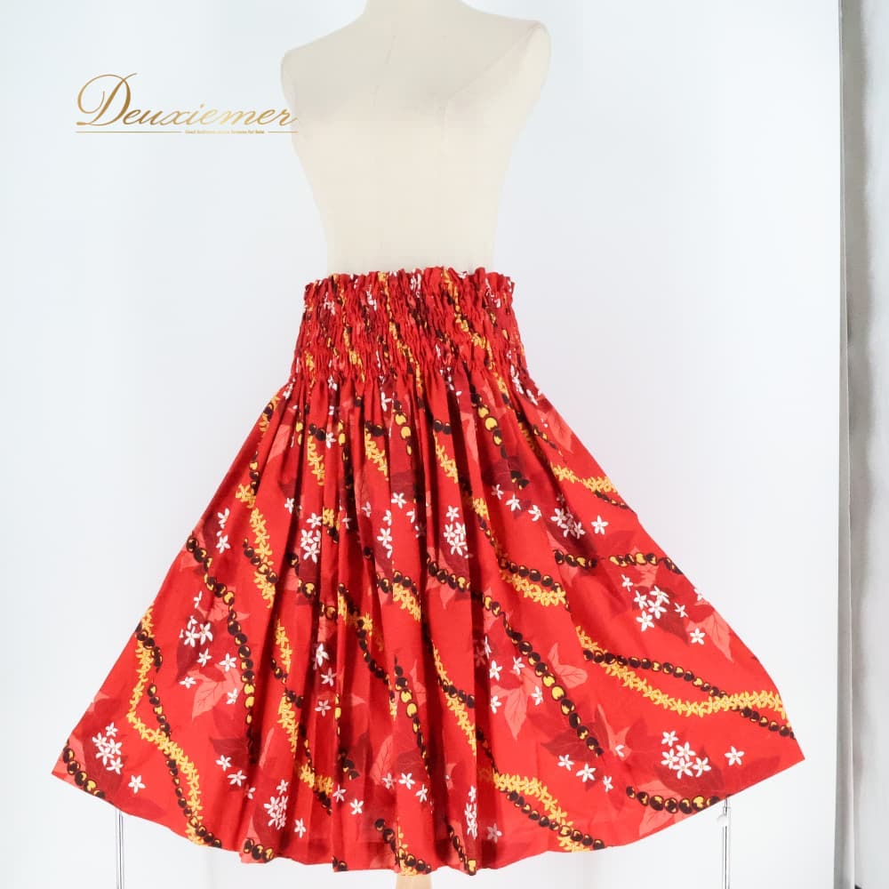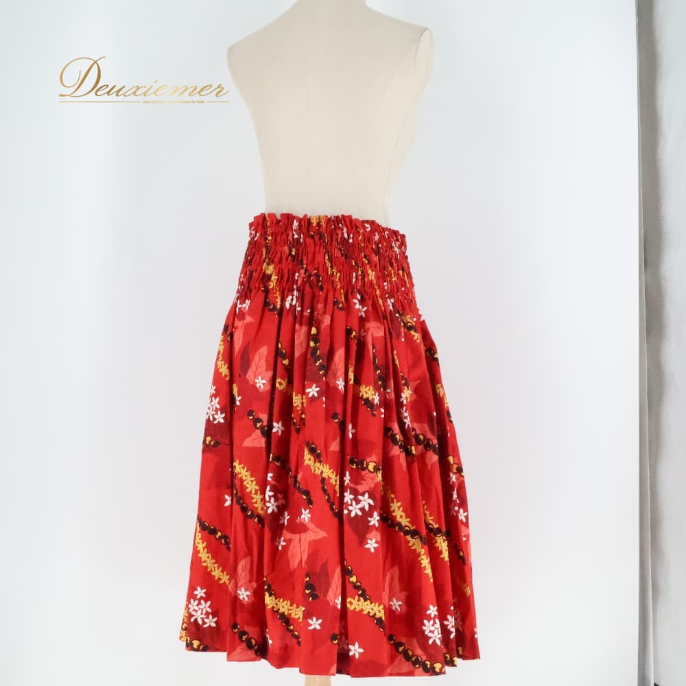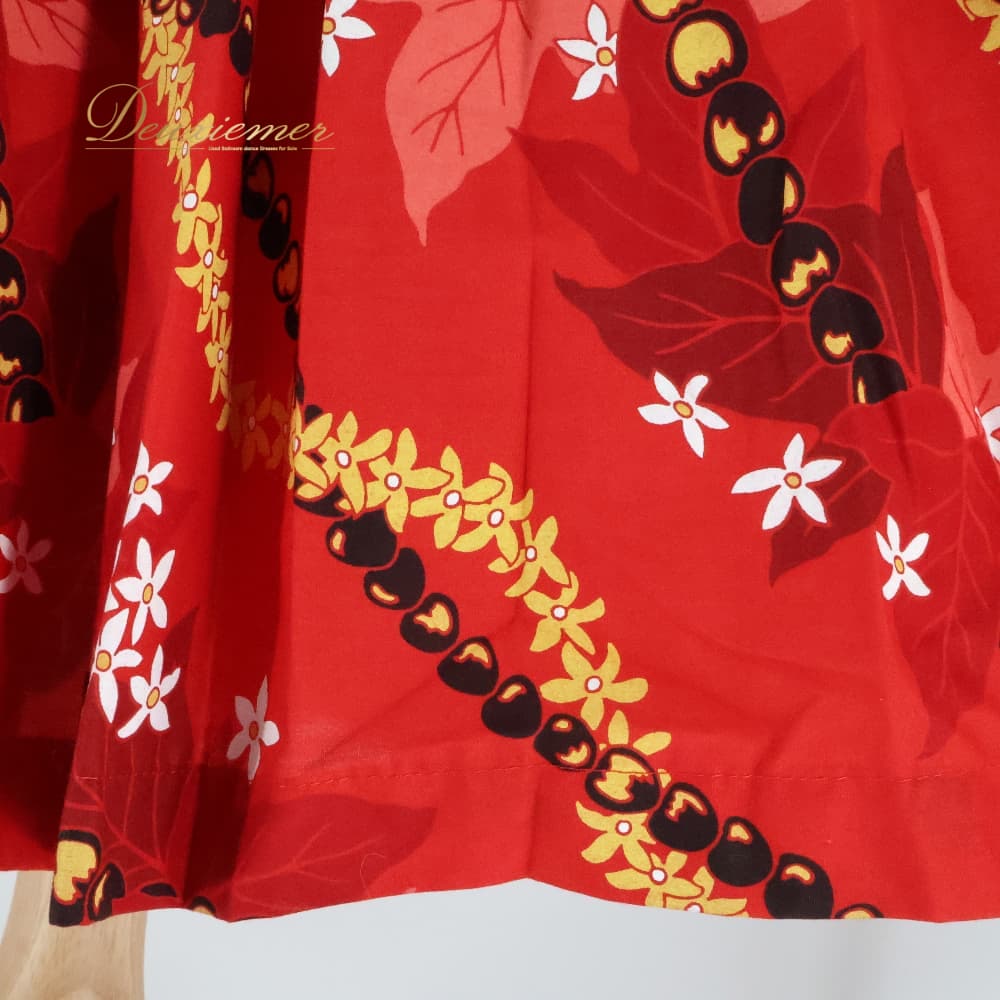 フラダンス 衣装 パウスカート レッド系 プルメリア柄 レイ柄 シングル かわいい 華やか 鮮やか 明るい 赤 黒 白 黄 ハワイアン アロハ ハワイアンプリント フラ ダンス レッスン 練習 シンプル ブラック系 ホワイト系 イエロー系 シングル丈 練習用