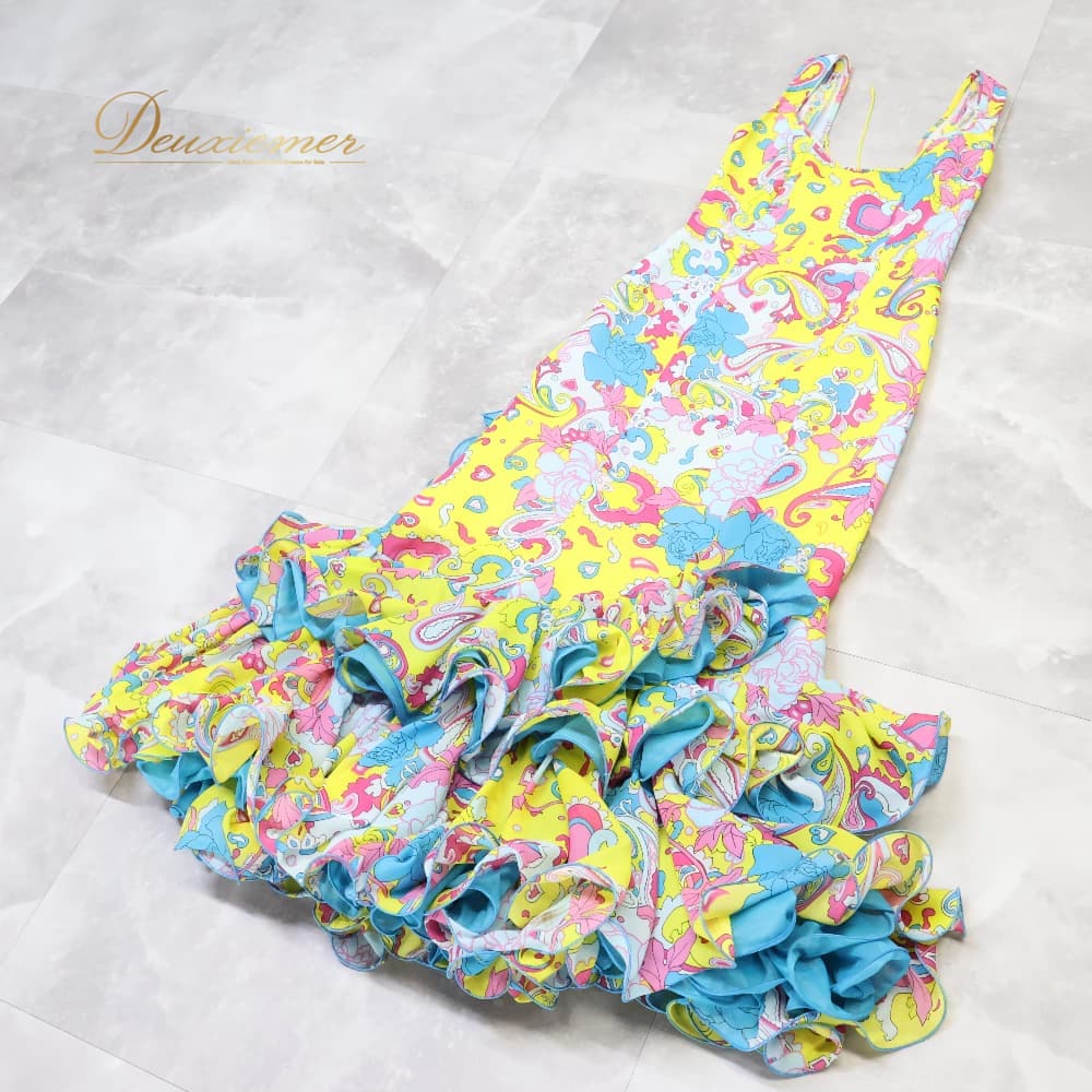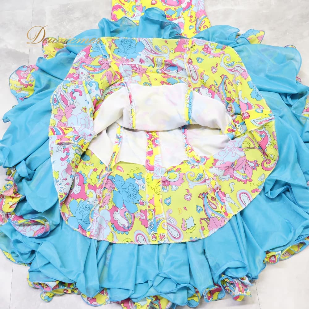 フラメンコ 衣装 MOLINA モリーナ ドレス ワンピース イエロー系 ブルー系 ピンク系 ホワイト系 黄色 水色 ボランテ フリル 多彩 カラフル ノースリーブ 華やか ダンス パーティ 発表会 舞台衣装