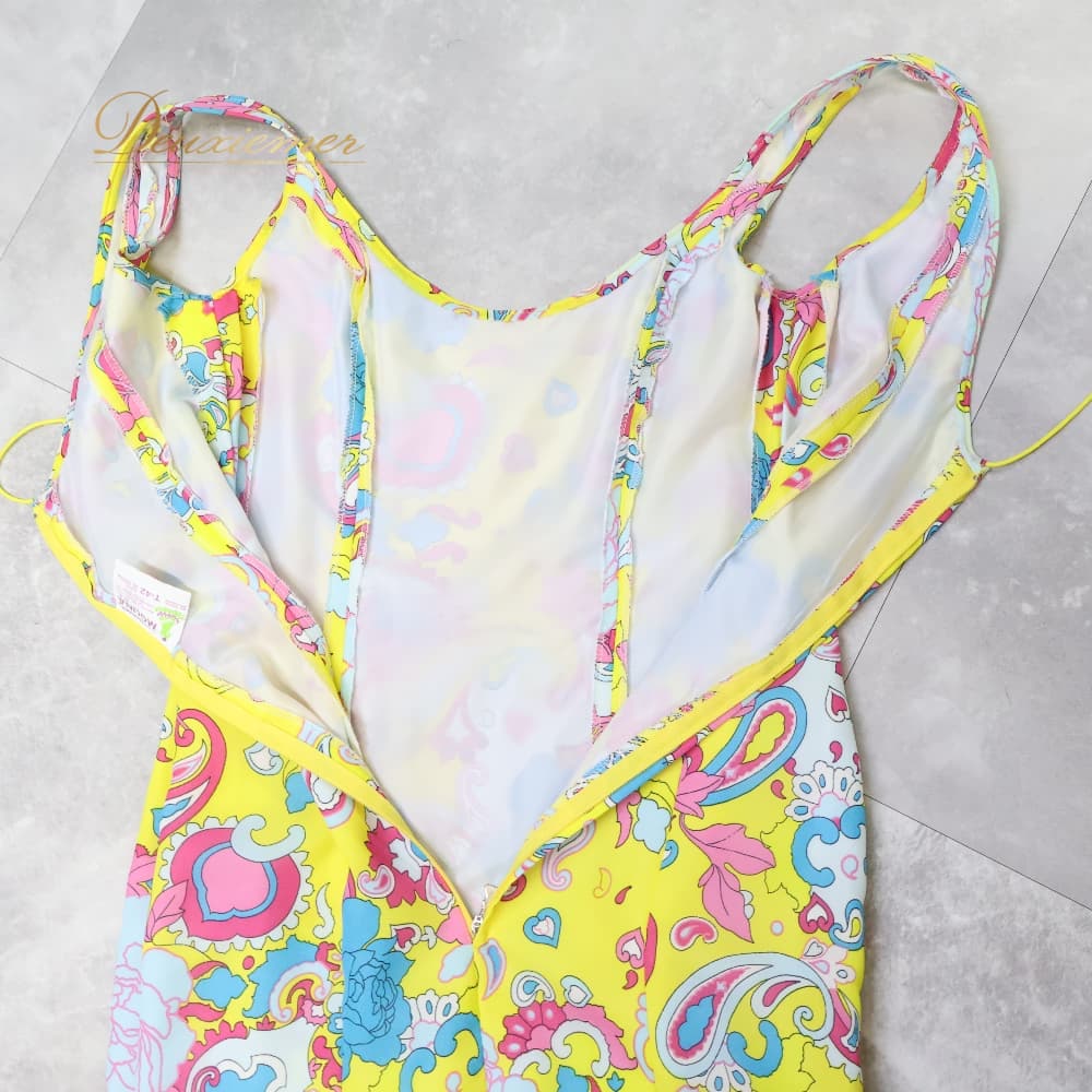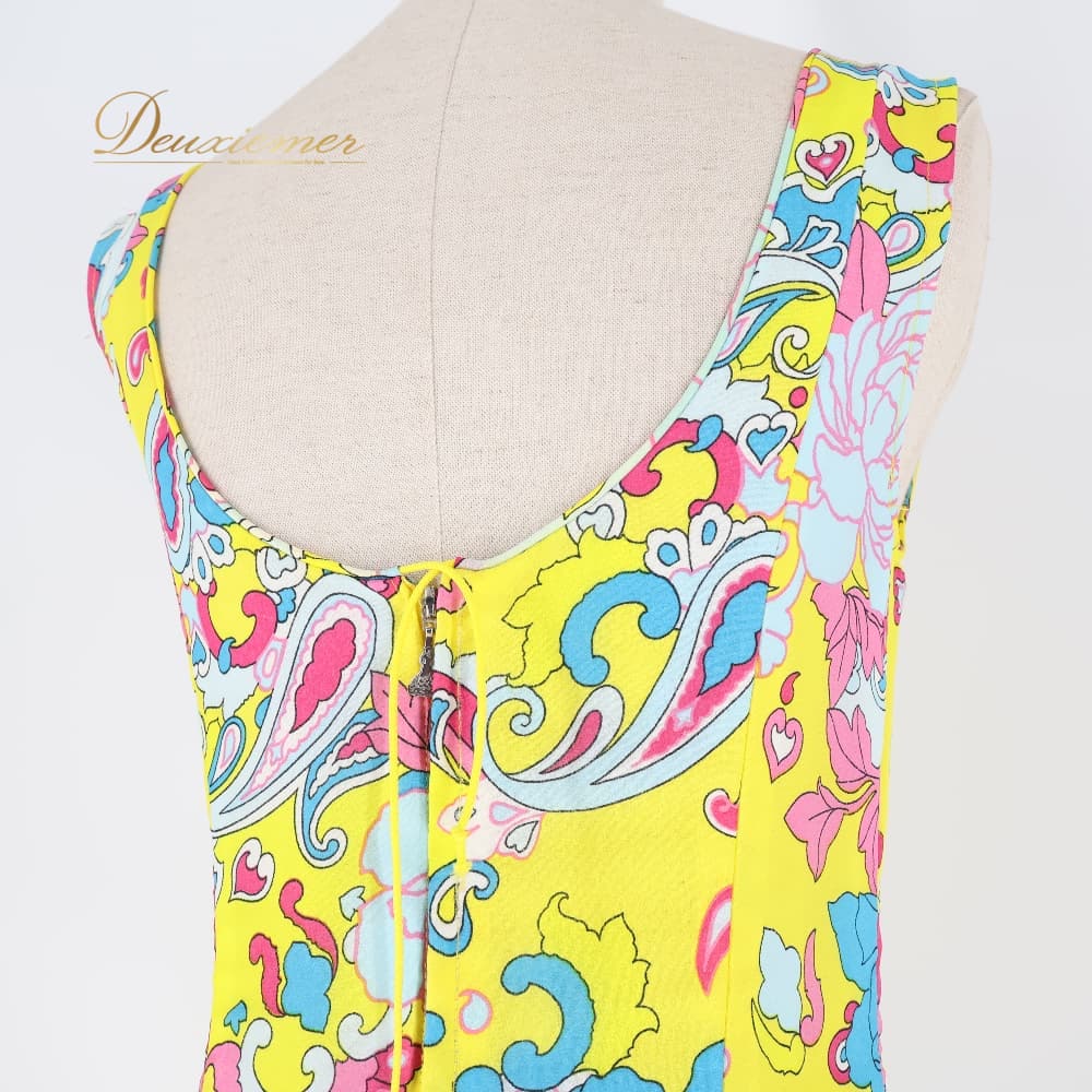 #MOLINA #モリーナ #カラフル #フリル #フリルデザイン #イエローブルーピンク #ホワイト #ワンピース #ドレス #バックファスナー #背面ファスナー #ノースリーブ #ウエスト #ポリエステル #伸縮性なし #胸パッドなし #夏コーデ #ガーリー #トレンドコーデ #ENUTSU
