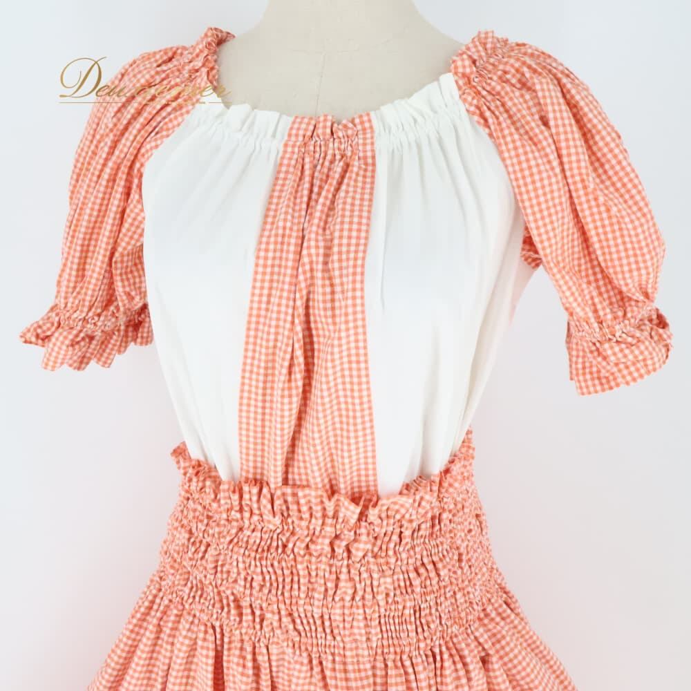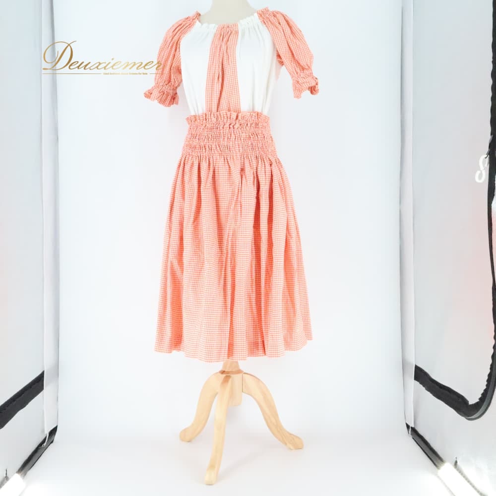フラダンス 衣装 ツーピース 上下セット セットアップ オレンジ系 ホワイト系 ツーカラー チェック柄 シングル シンプル かわいい 華やか 鮮やか 明るい 橙 白 ハワイアン アロハ フラ ダンス レッスン 練習 トップス スカート 2点セット