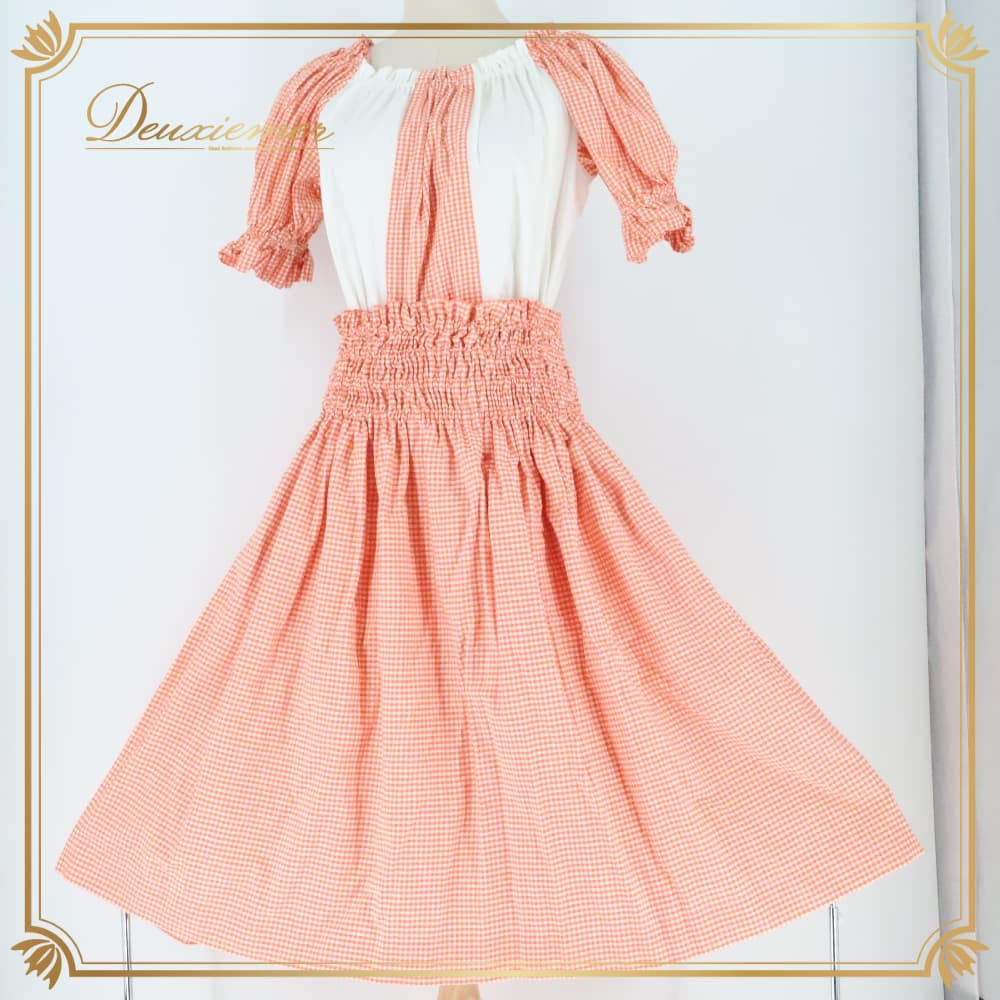 #セットアップ #トップス #スカート #チェック柄 #オレンジ #ホワイト #ガーリー #可愛い #春コーデ #夏コーデ #秋コーデ #レディース #ノースリーブコーデ #ウエストゴム #ウエストリボン風 #通勤コーデ #デートコーデ #カジュアル #春夏ファッション #古着女子 #ENUTSU