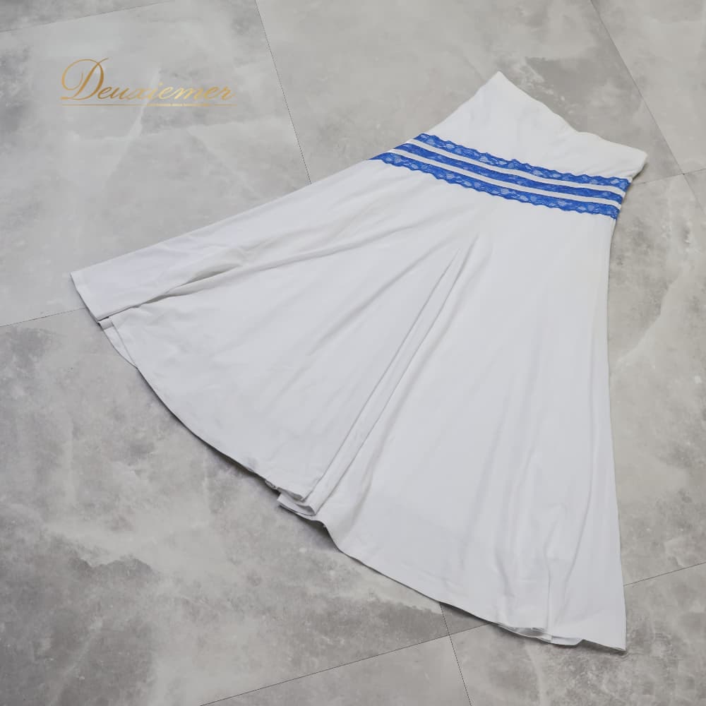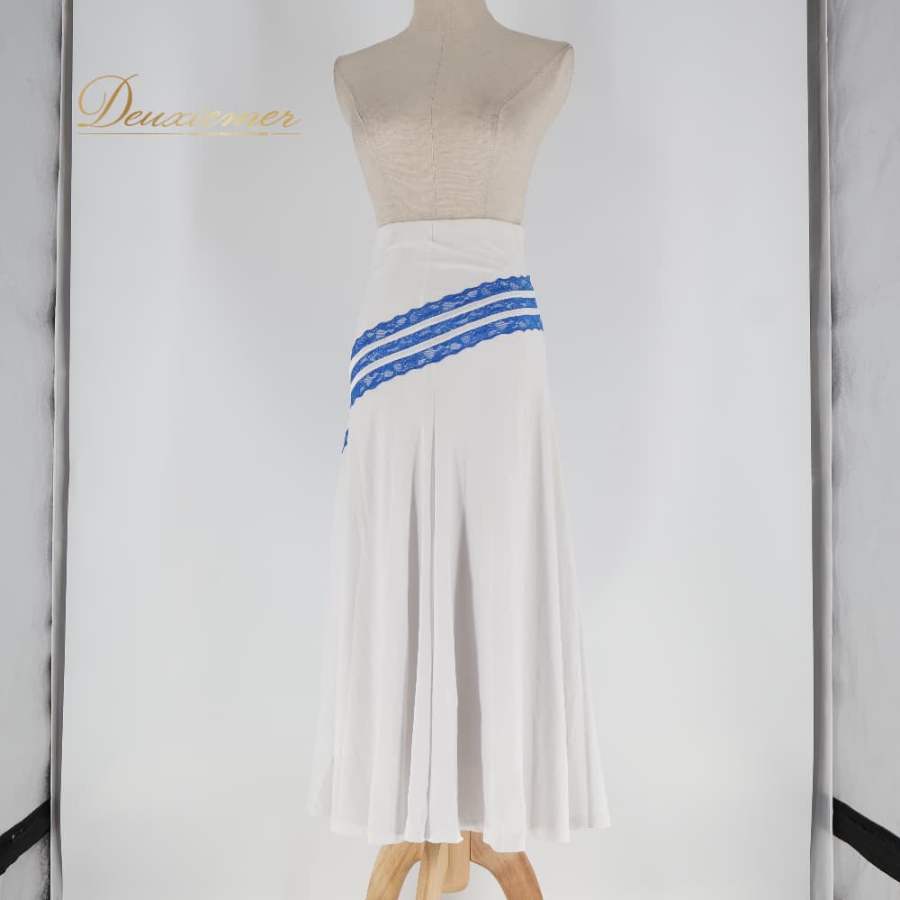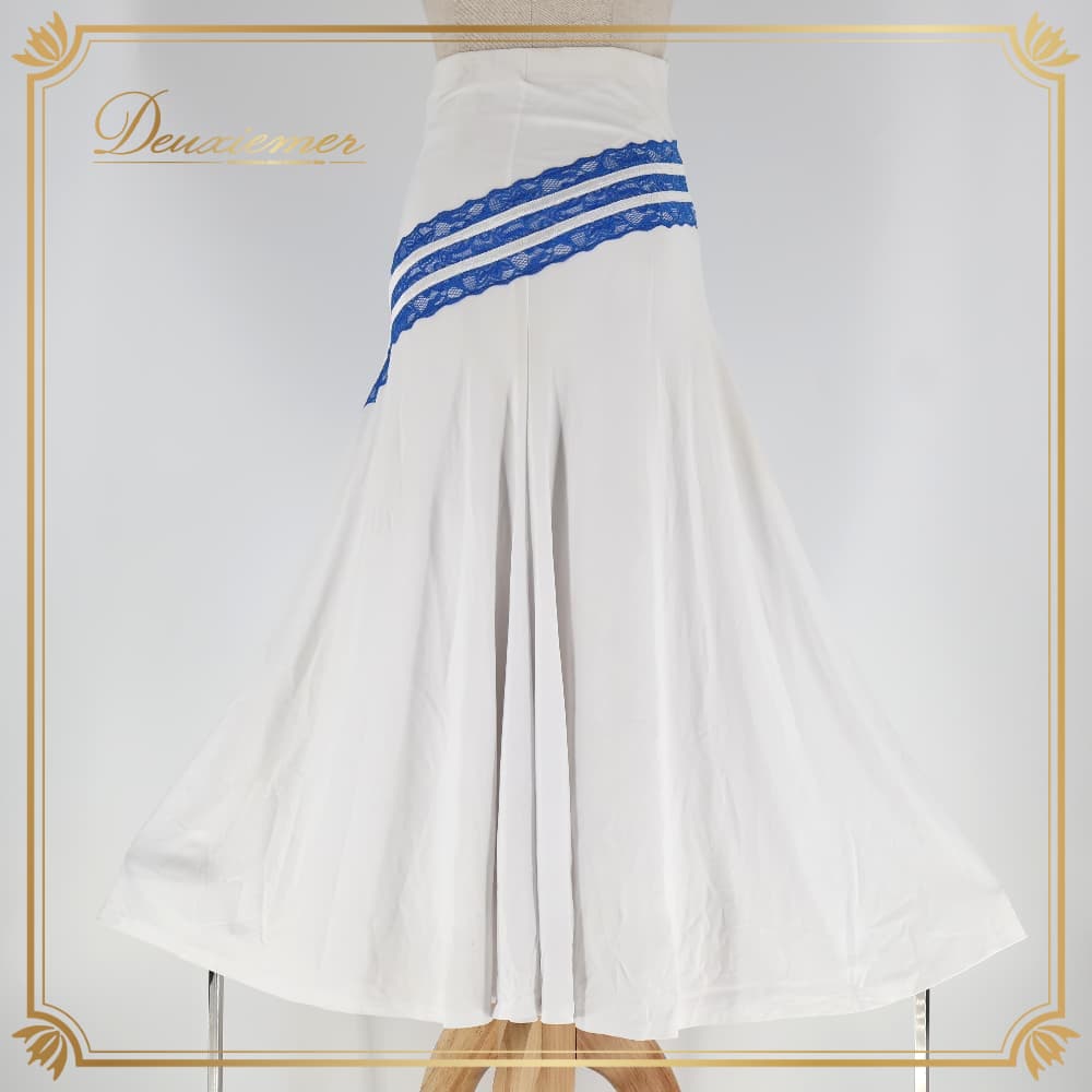 社交ダンス 衣装 gentil ジャンティ スカート レッスンウェア ホワイト系 シンプル 練習 レッスン 伸縮 ストレッチ 白 青 上品 明るい かわいい ダンス衣装 イベント ステージ おしゃれ パーティー ブルー系