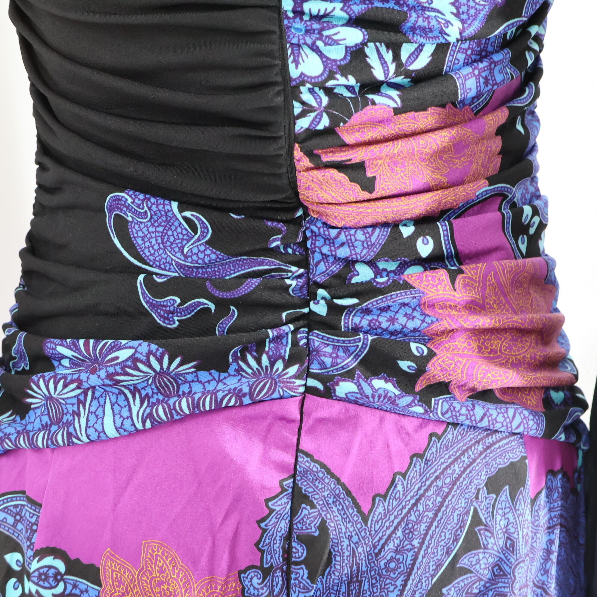 【美品 日本製 社交ダンス衣装】ブラック Chacott チャコット ワンピース ドレス 黒 紫 パープル 青 ブルー 長袖 柄 模様