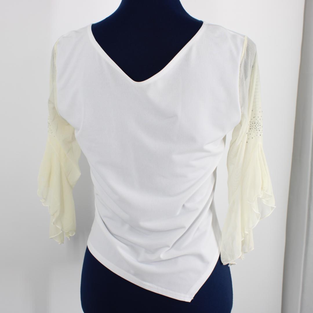 【美品 社交ダンス衣装】トップス leirena レイリーナ 白 ホワイト ラインストーン 透け感 シースルー 清楚 上品 かわいい