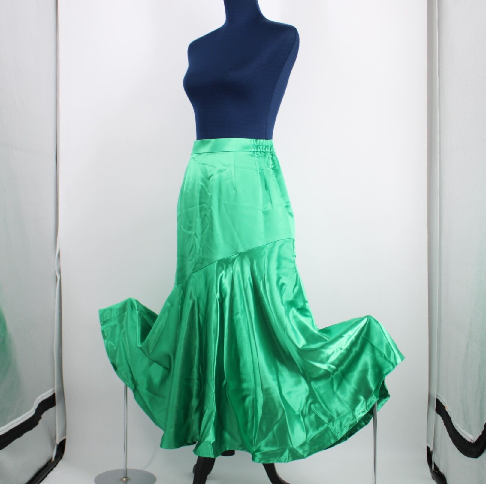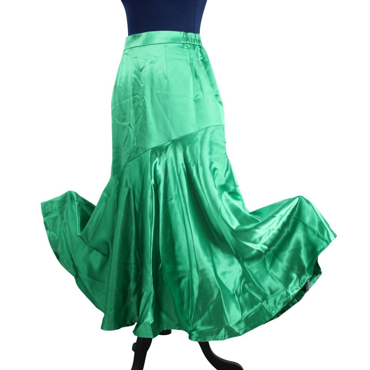 【美品 フラダンス衣装】グリーン スカート 緑 無地 光沢 シンプル ハワイアン フレアスカート アロハ 高級感 綺麗 華やか