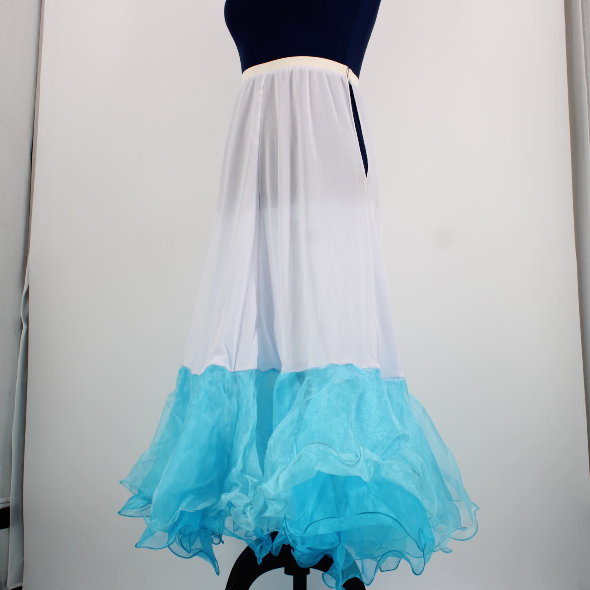【美品 社交ダンス衣装】スカート パニエ ペチコート 水色 白 ホワイト ライトブルー バイカラー 上品 かわいい