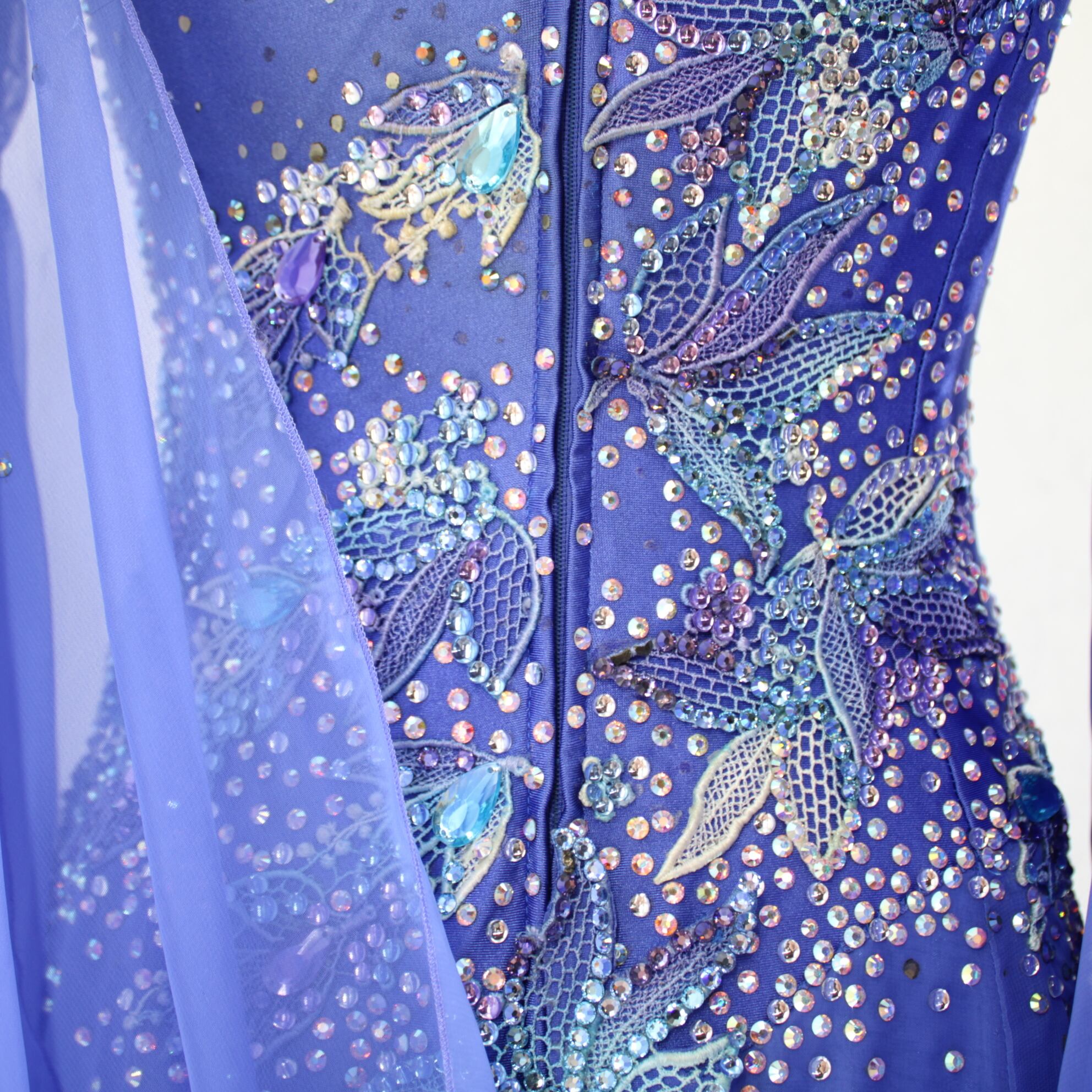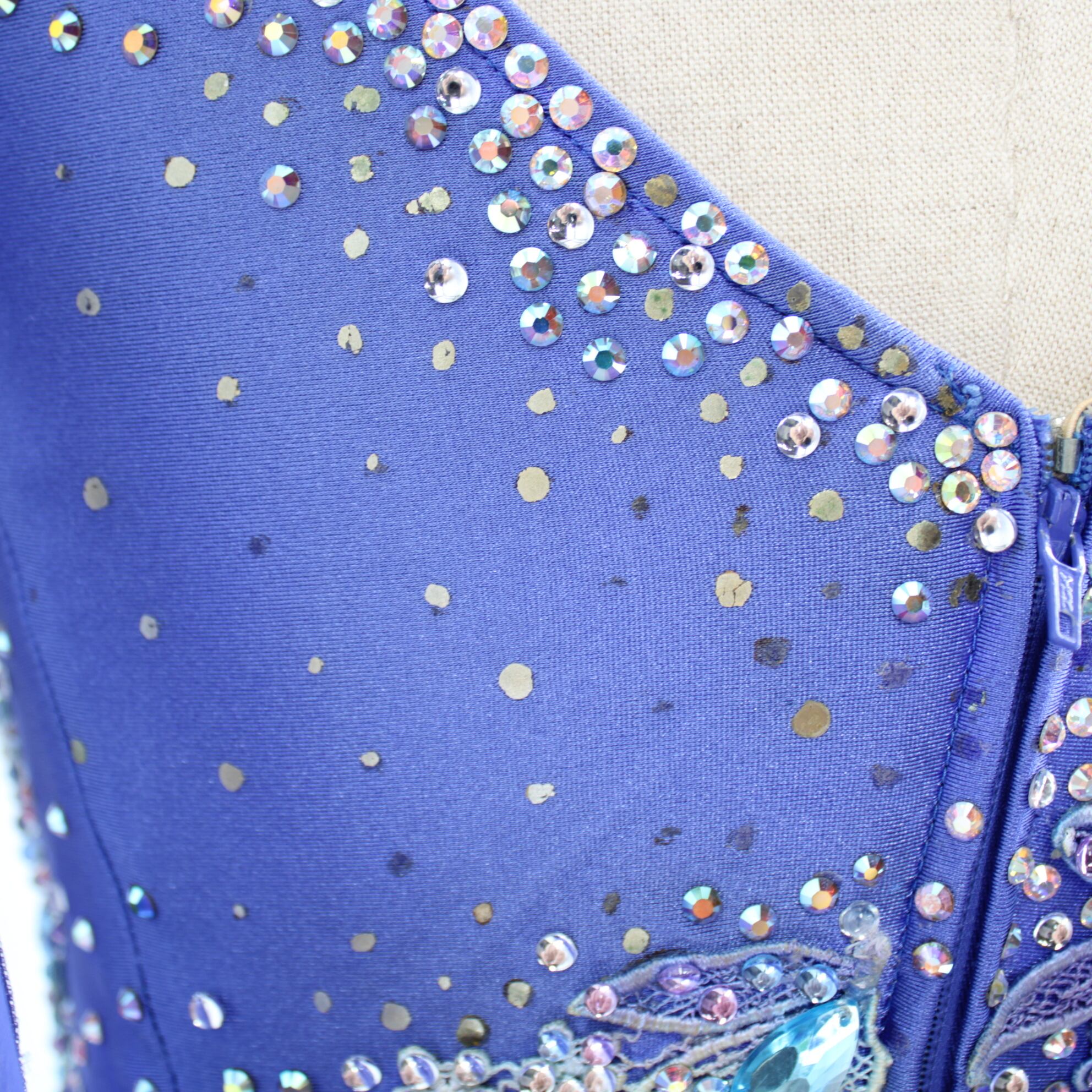 #社交ダンス衣装 #ブルードレス #レースドレス #ラインストーンドレス #ビーズ装飾 #ラッパ袖 #発表会ドレス #デモ用ドレス #競技用ドレス #ダンス用ワンピース #高級感 #上品スタイル #お洒落ドレス #女性用レオタード #クロッチ付き #ステージ衣装 #ダンスファッション #ENUTSU #中古ドレス #美品