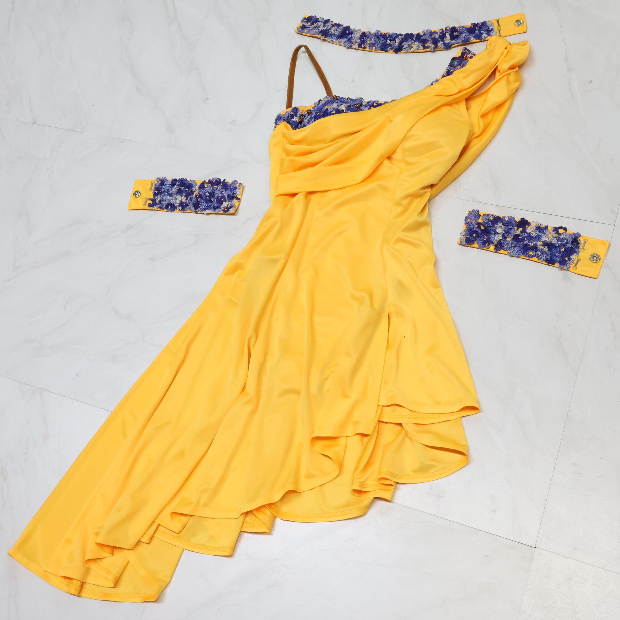 #社交ダンス衣装 #ラテンドレス #イエロー #ブルー #花飾り #チョーカー #ブレスレット #水色 #日本製 #ダンス衣装販売 #中古ダンス衣装 #ダンスコスチューム #ステージ衣装 #ダンスファッション #ダンスウェア #ダンススタイル #ダンスパフォーマンス #ダンスイベント #ダンスパートナー #ダンスレッスン #ダンスショー#ENUTSU