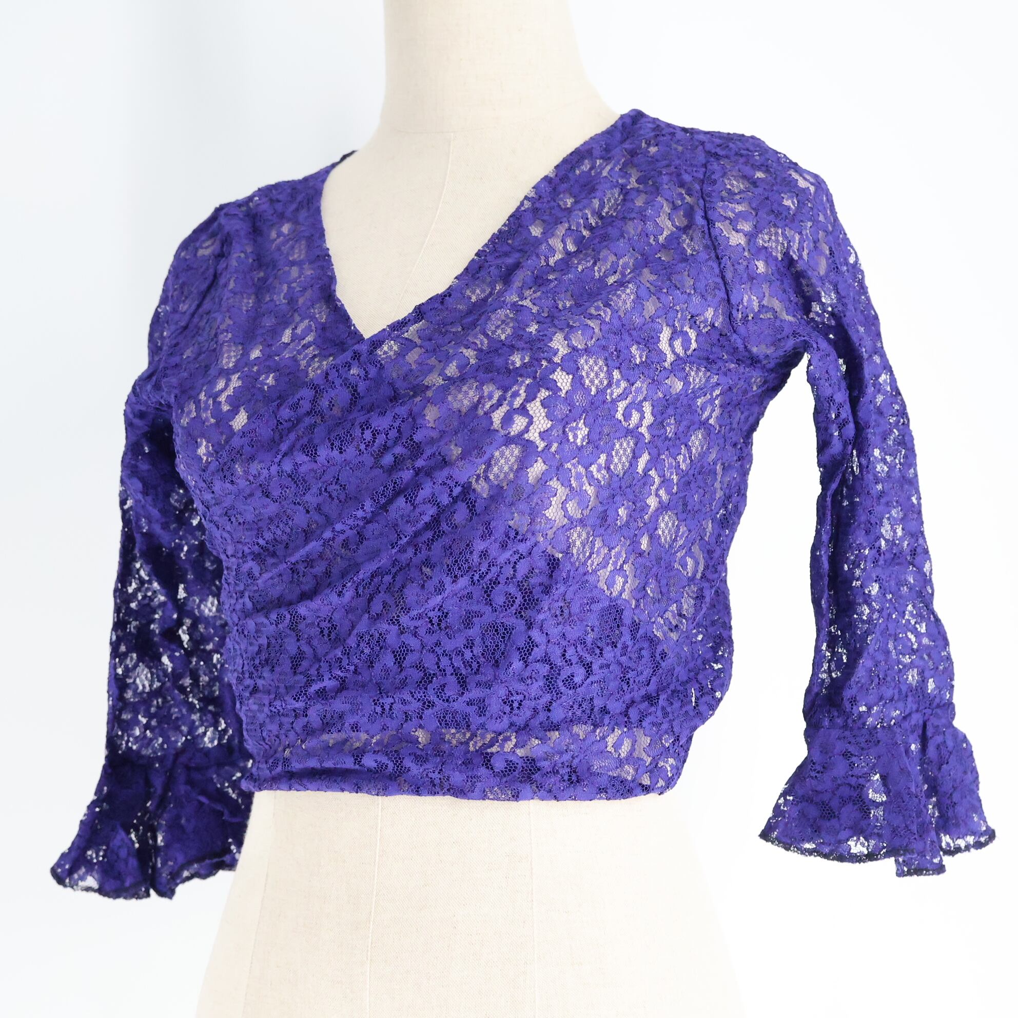 【美品 フラメンコ衣装】パープル ブラウス トップス レース 紫 リボン 花柄 ダンス用 レディース 女性 単色 一色 袖有り