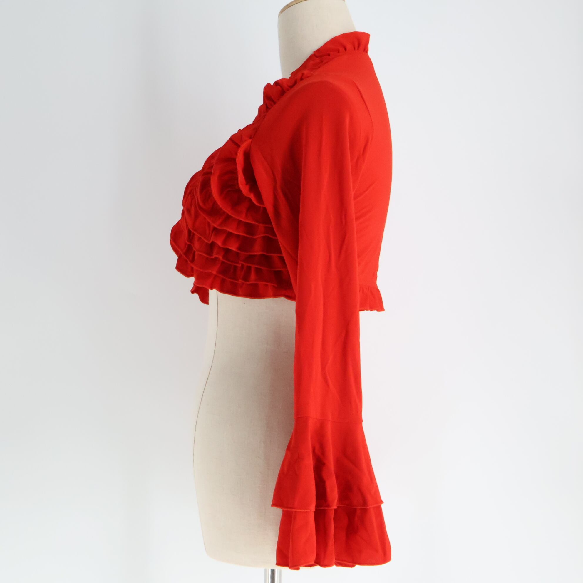 【美品 フラメンコ衣装】レッド ICHIOKU イチオク ブラウス トップス ボランテ フリル レース 赤 無地 かっこいい 単色 一色