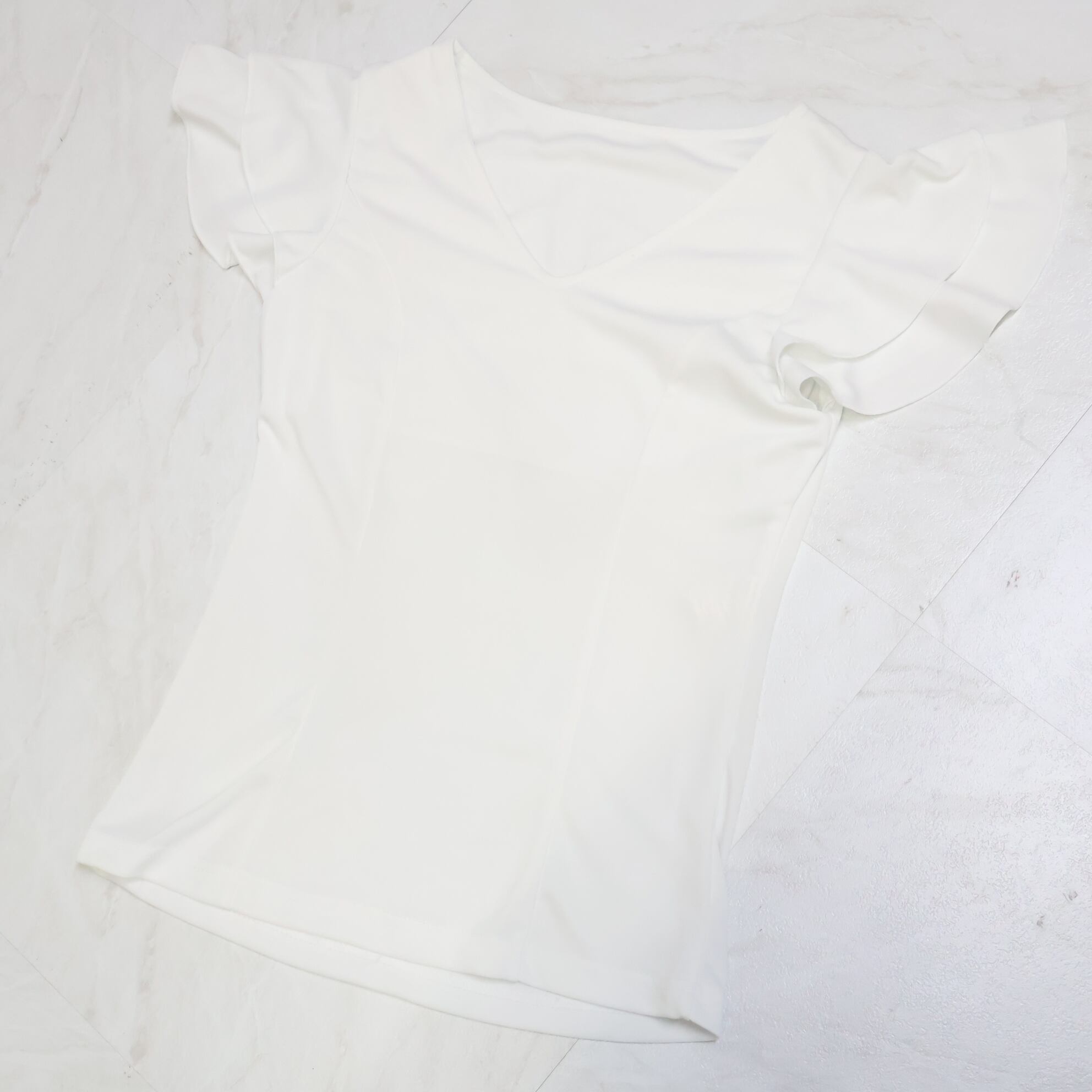【美品 フラメンコ衣装】ホワイト ICHIOKU イチオク ブラウス トップス 白 無地 半袖 フリル 練習着 レッスン ダンス Tシャツ