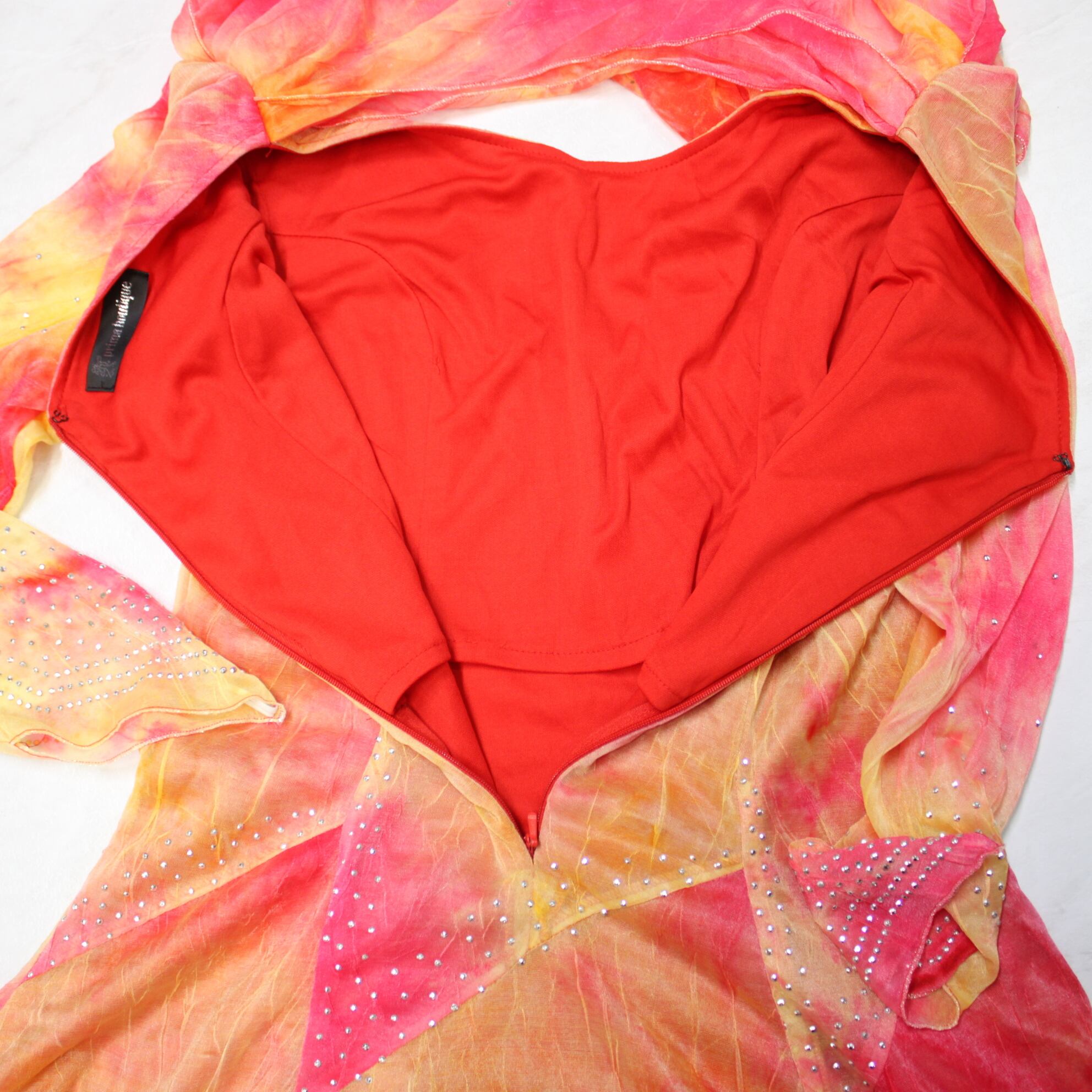 【美品 社交ダンス衣装】オレンジ prima boutique プリマブティック ワンピース ドレス 黄色 ピンク ドレープ レース 軽い
