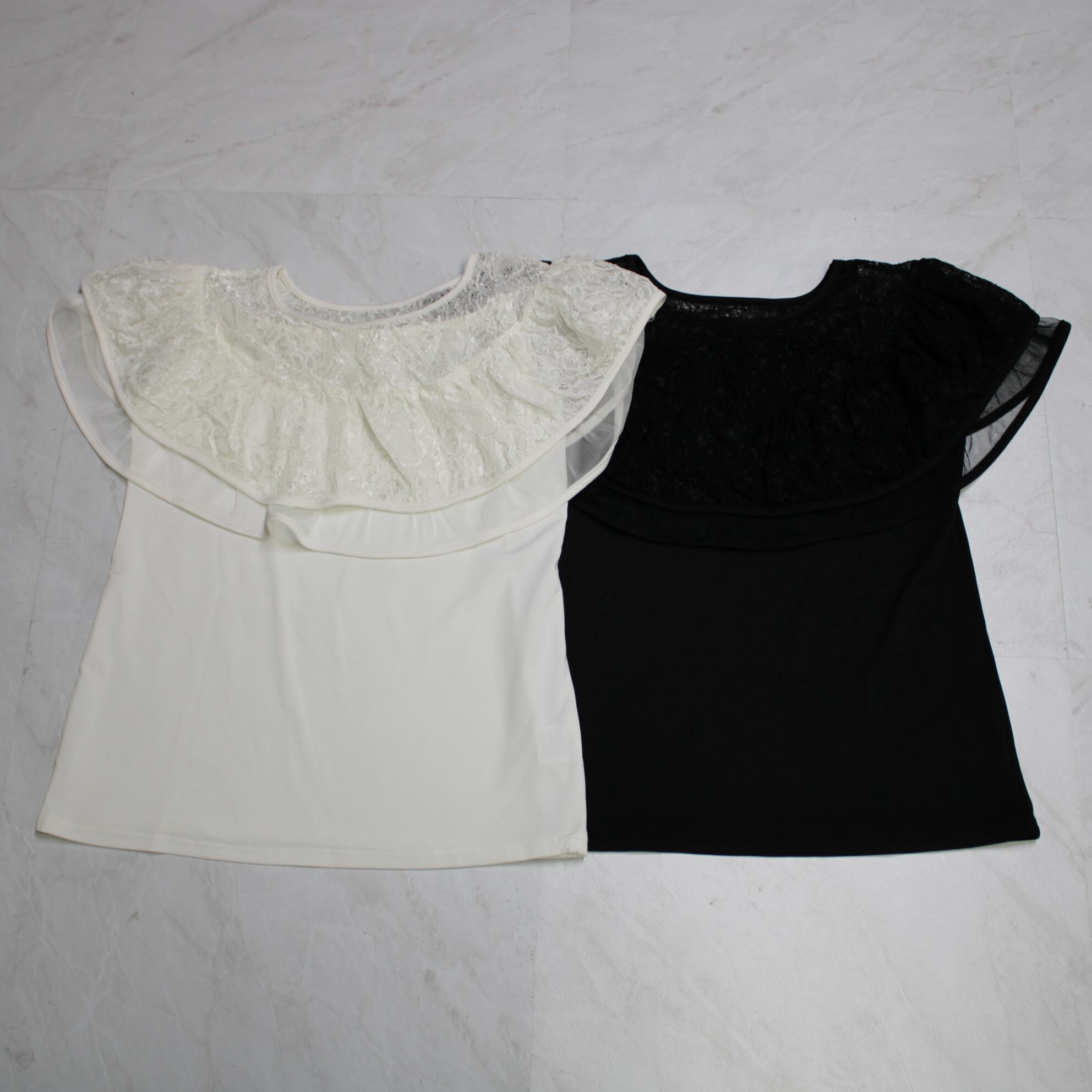 【美品 フラダンス用衣装 2点セット】トップス ブラウス まとめ売り ホワイト ブラック レース Mermaid Line マーメイドライン
