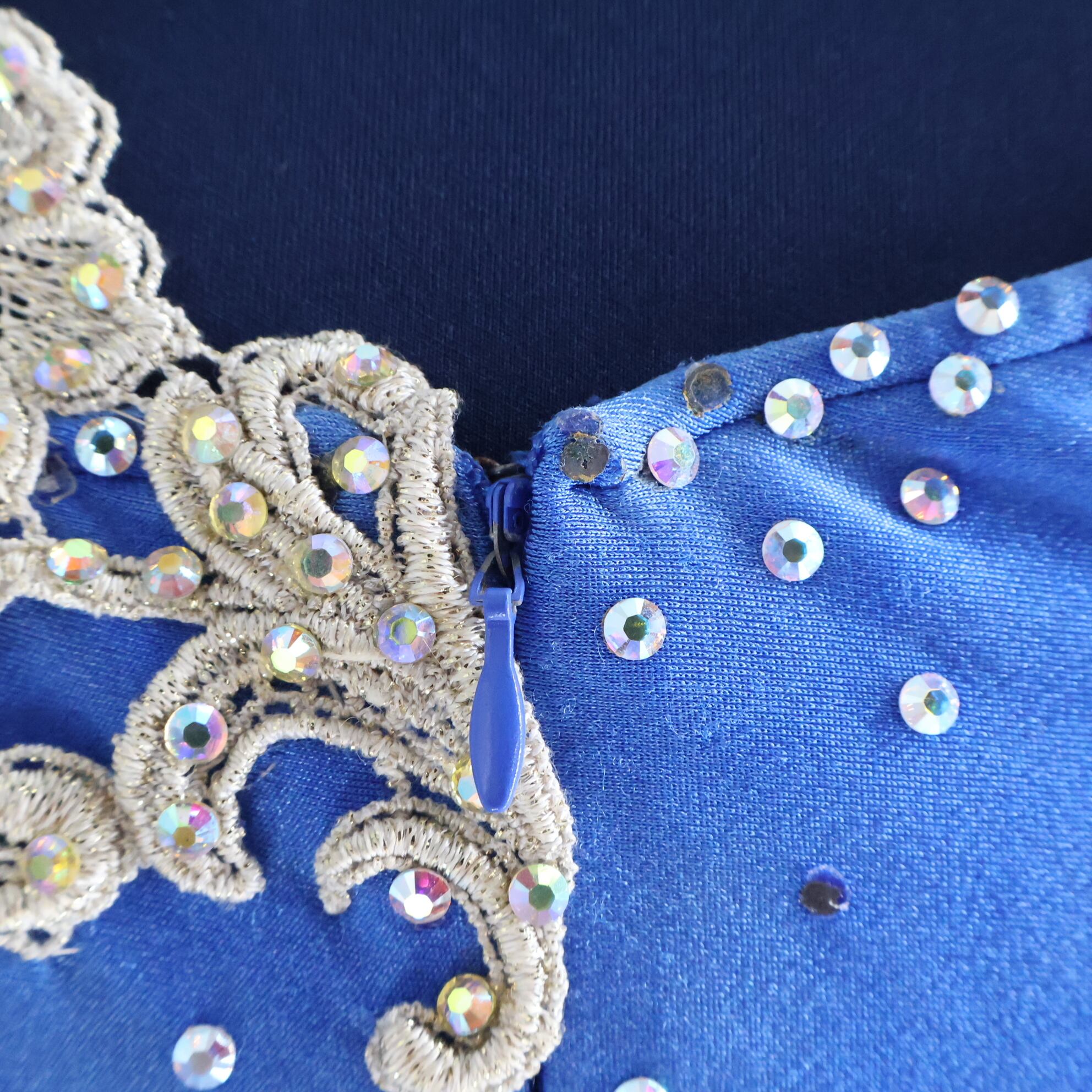 #社交ダンス衣装 #ブルードレス #レースドレス #フリルドレス #ラインストーンドレス #レディースダンスウェア #競技用ドレス #デモ用ドレス #高級感 #上品 #伸縮性 #Lサイズ #青ドレス #白レース #ゴールドアクセント #女性用レオタード #クロッチ付き #発表会用ドレス #ダンス用ワンピース #フロート付きドレス